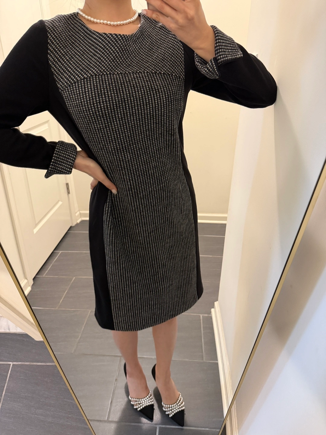 100% Wool Black and White Houndstooth Dress