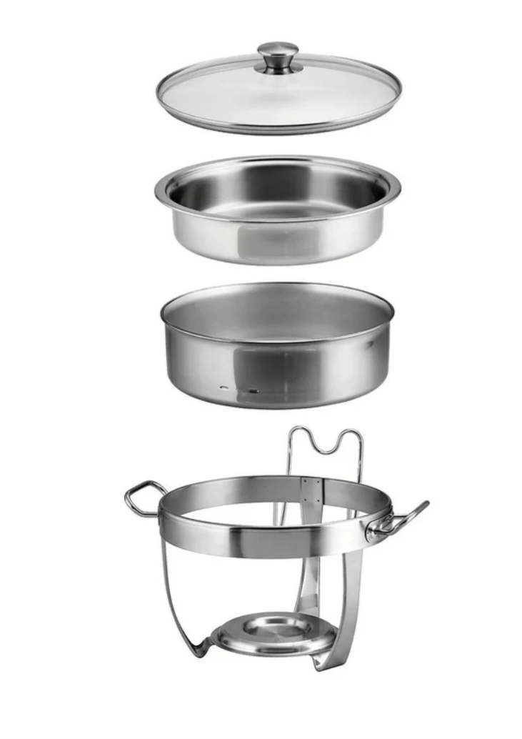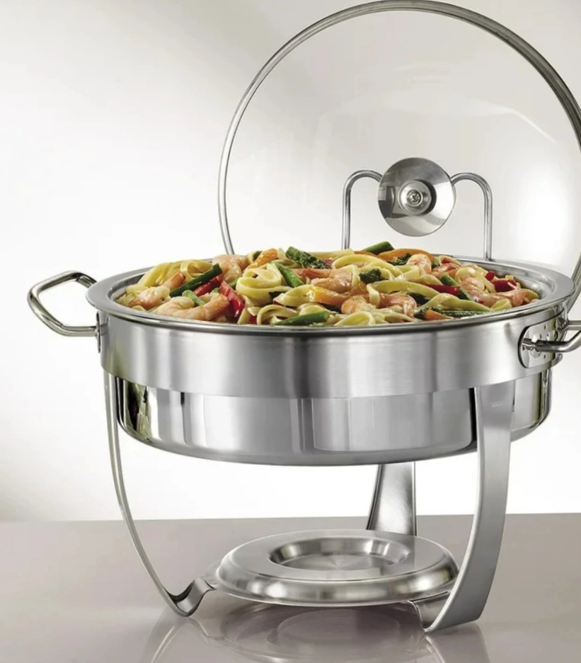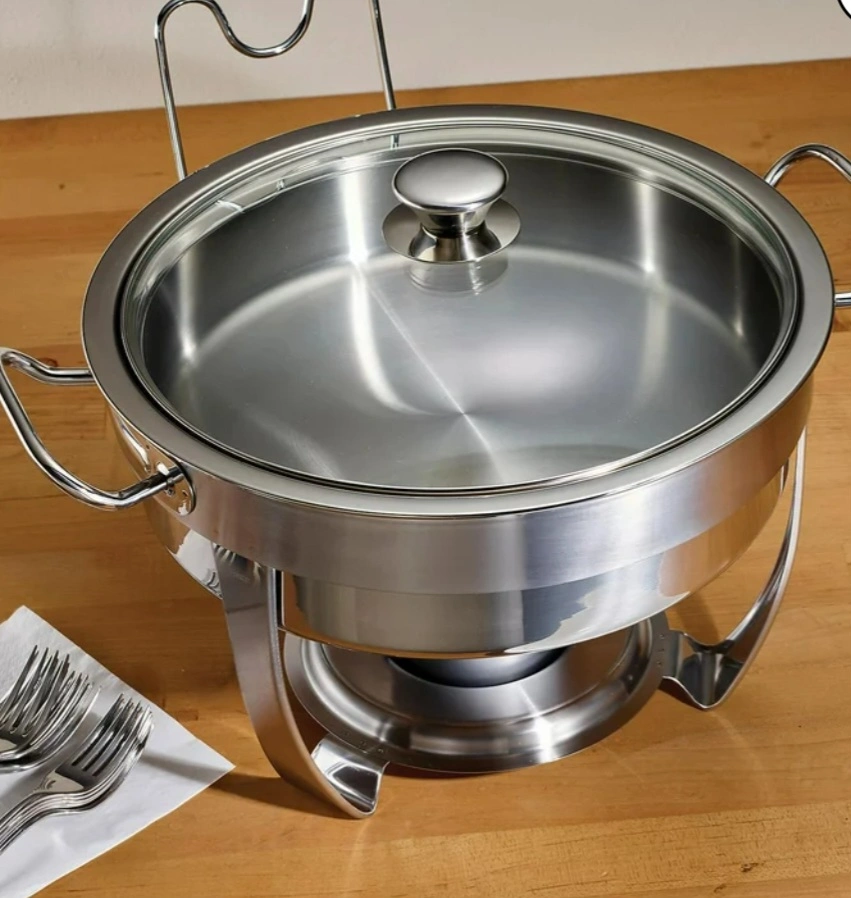 Product details Tramontina 5 Qt. Stainless-Steel Chafing Dish About this item All food contact surfaces are constructed with premium 18/10 stainless steel Heat-resistant and shatter-resistant tempered glass lid with stainless-steel rim Food pan is dishwasher safe and oven-safe up to 500°F Description Tramontina's 5-Quart Stainless-Steel Chafing Dishes is durable, elegant and perfect for keeping your savory dishes warm and appetizing while entertaining your guests. Crafted with quality materials, the stainless-steel food pan in the set can be used to pre-heat food in the oven before placing in the chafing dish, and for keeping cold foods chilled on your serving table. The chafing dish features a heat-resistant and shatter-resistant tempered glass lid with a convenient lid holder, and the base is perfect for holding standard gel or liquid chafing fuel canisters.