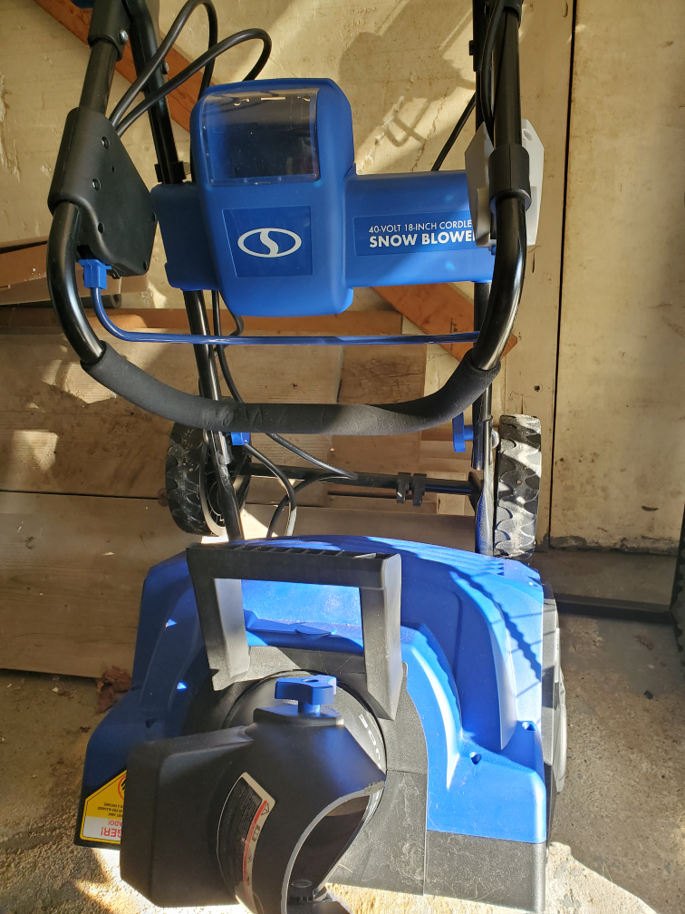 Cordless iON Electric Snowblower with 18-inch Clearing Width and Rechargeable EcoSharp Battery. Purchased last year for $400. In excellent condition. Folds for easy storage.