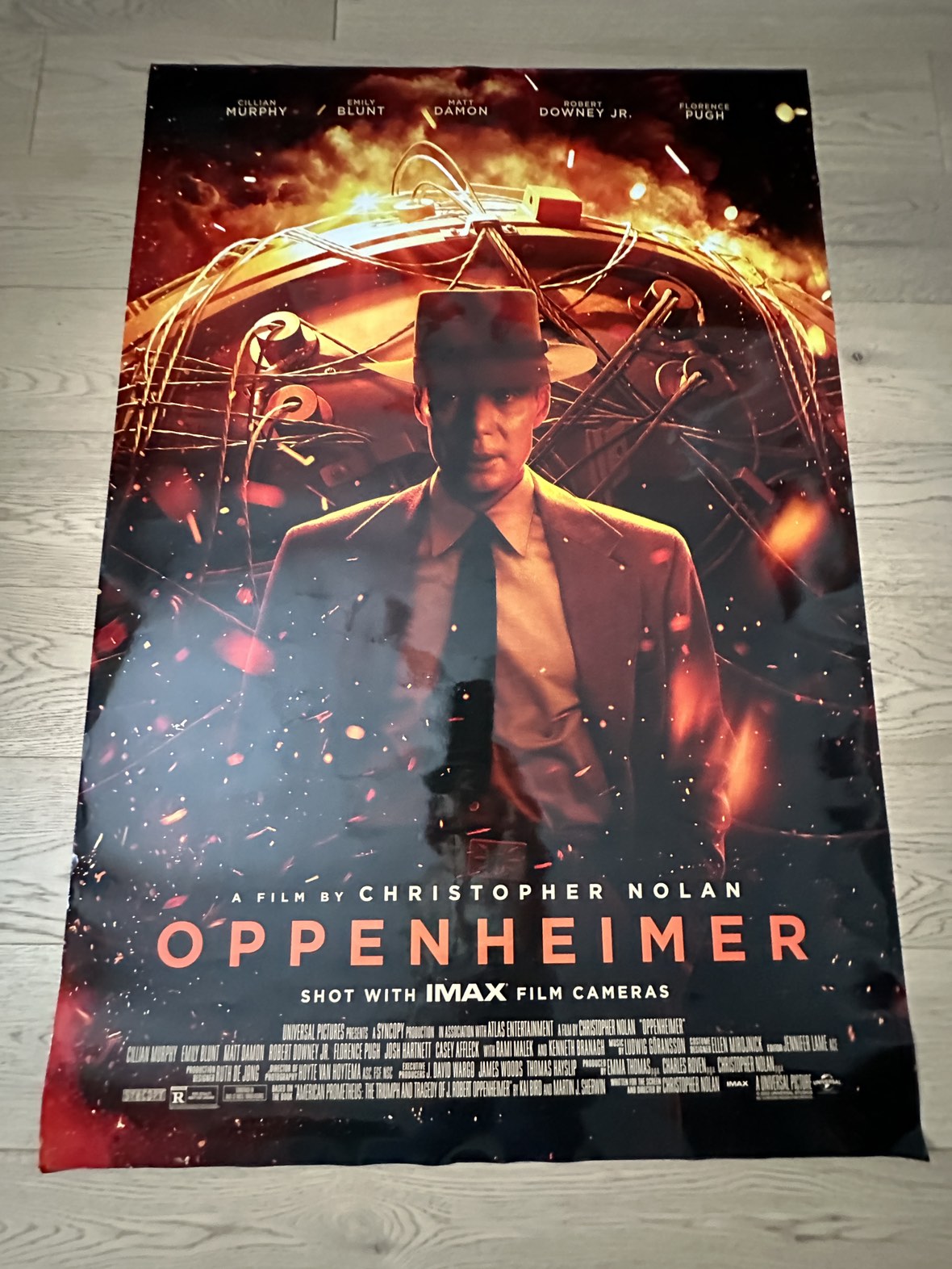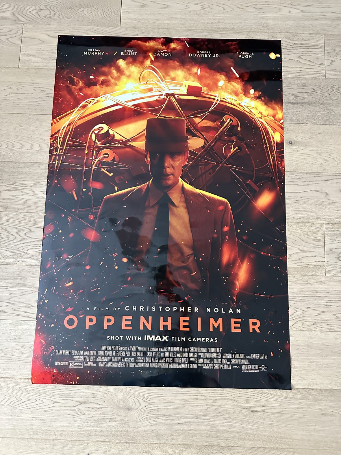 This Toronto Cineplex Oppenheimer Poster was hung and used for about a month with little to no one touching it. There is some small creases at some corners but other than that it is beautiful.
