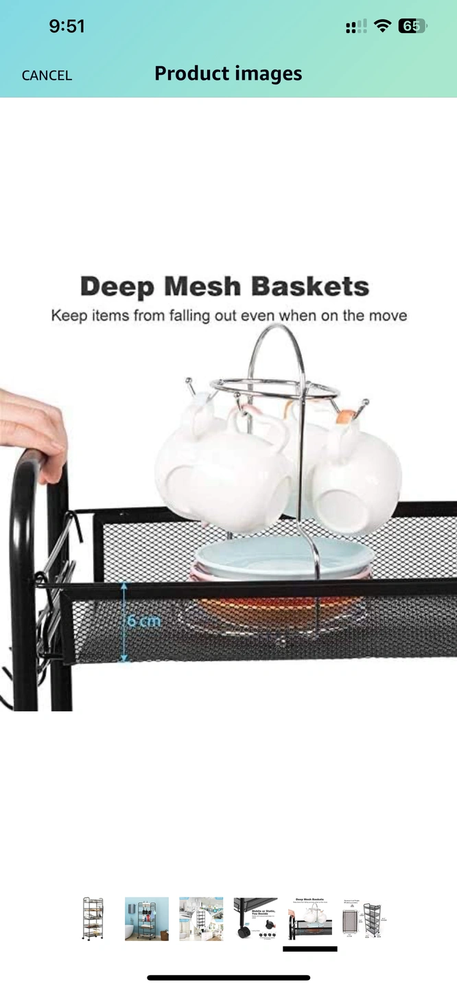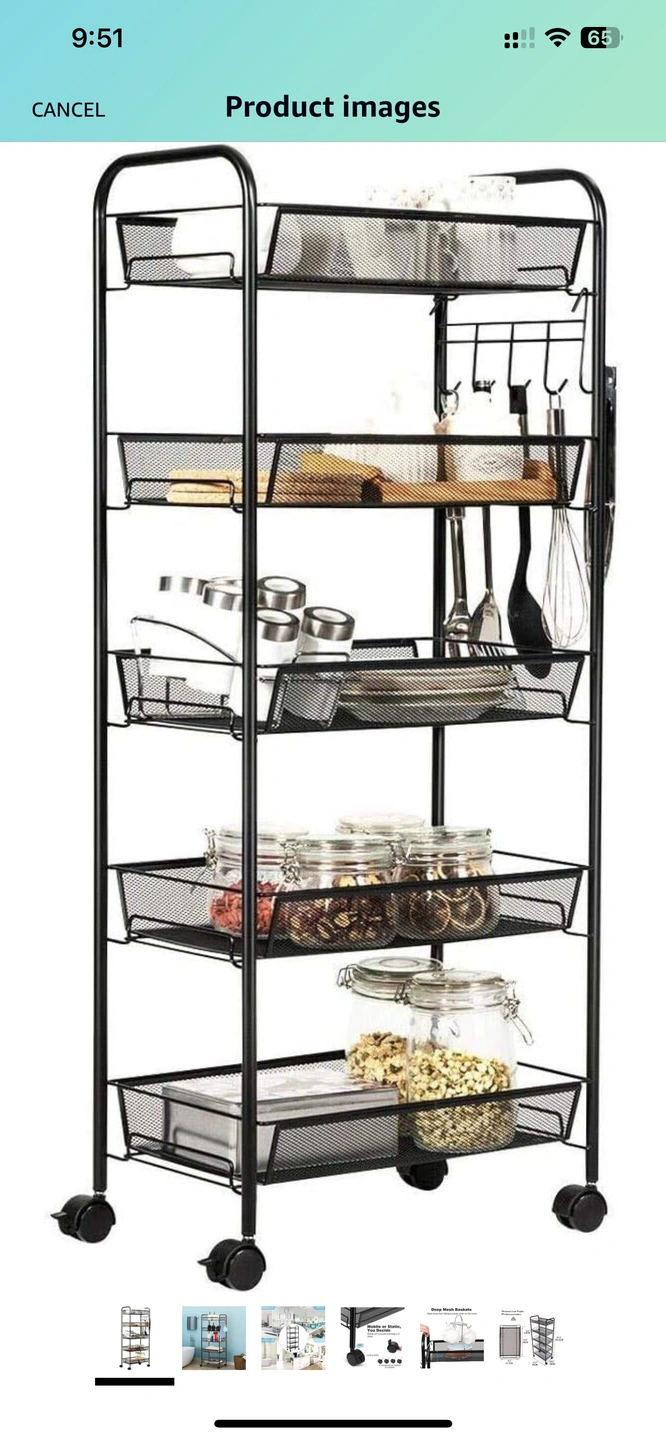 Cart Organizer, Utility Mobile Metal Mesh Trolley with Wire Basket Shelving, Cart on Wheels for Kitchen Office Bathroom, Black