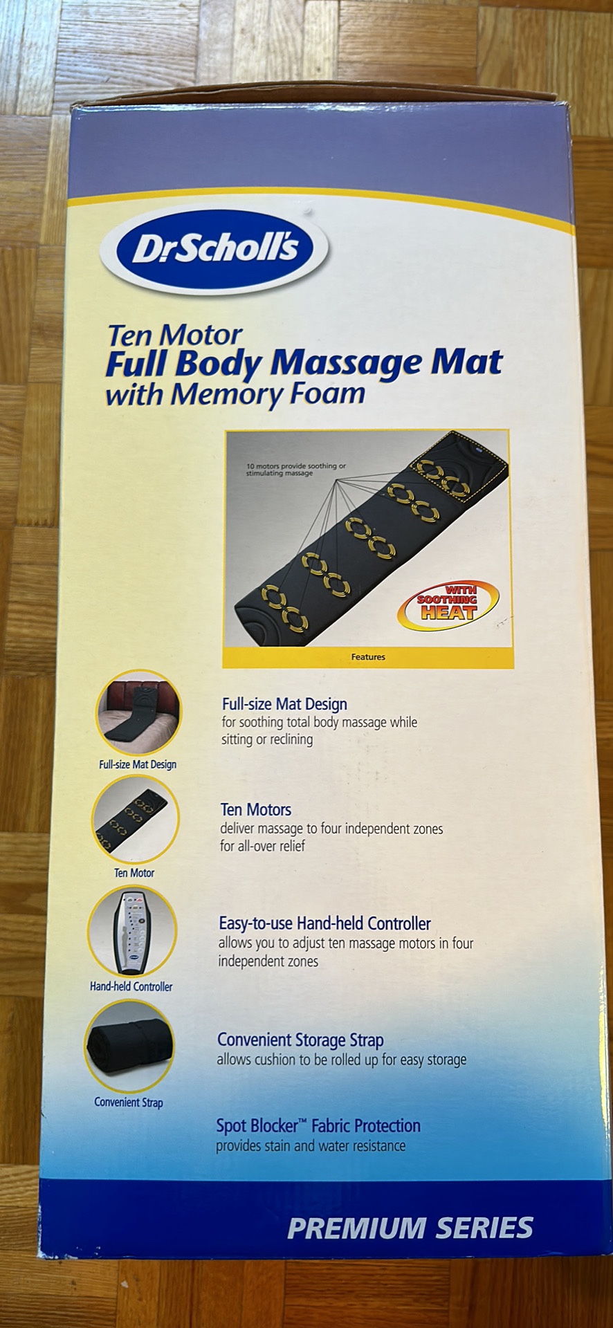 Ten Motor Full Body Massage Mat with Memory Foam and soothing heat. Still in box, brand new and never used.