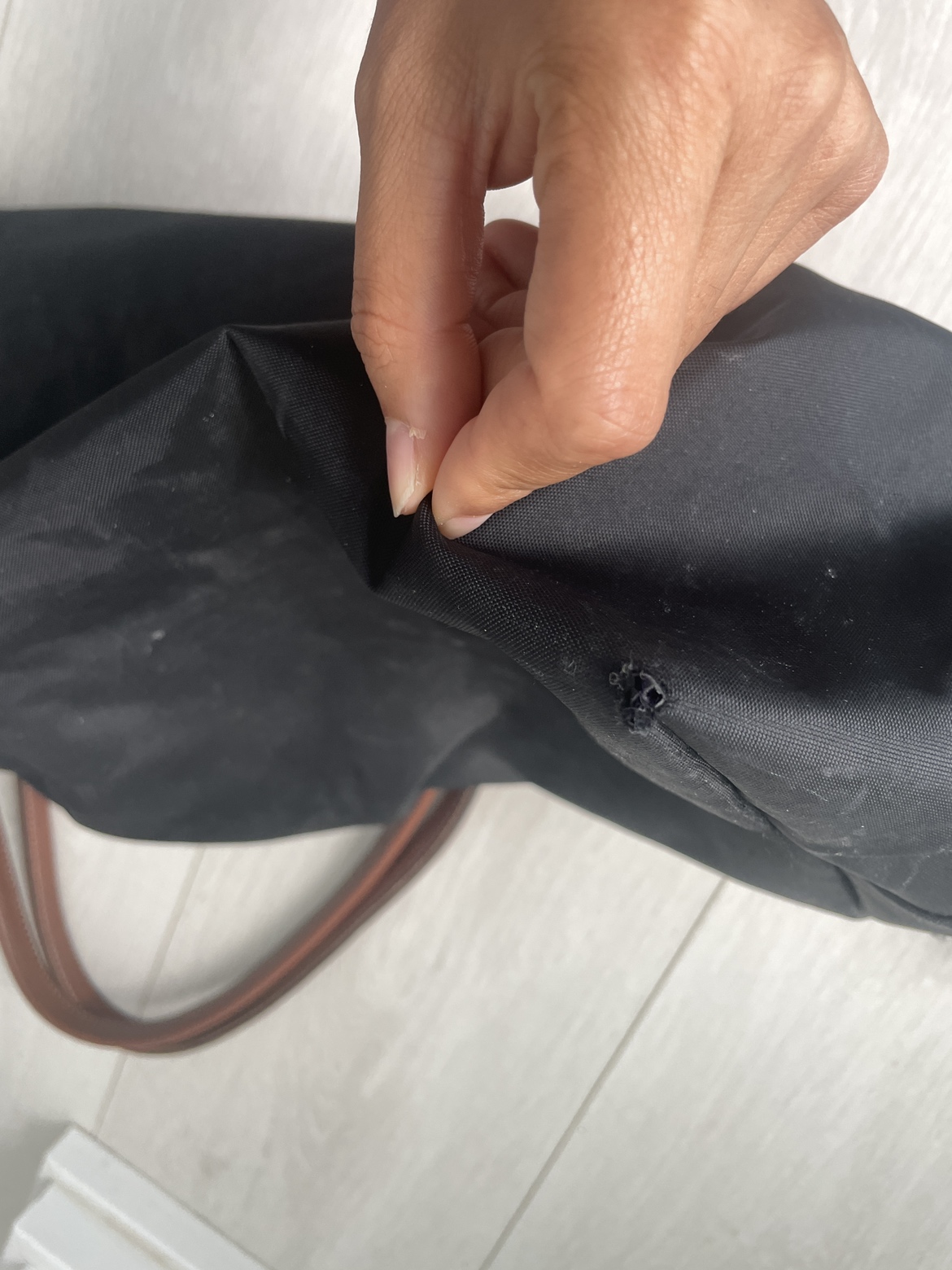 Minor white scuffs and some tiny cuts to the nylon due to usage