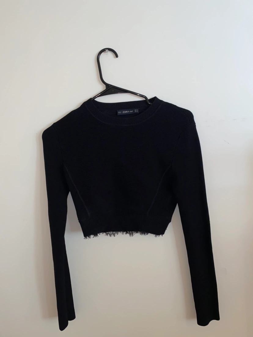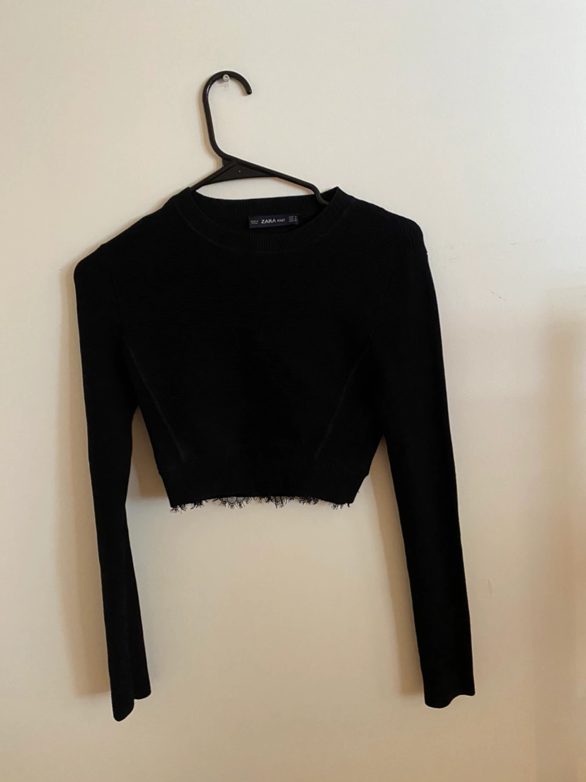 Ribbed black zara sweater with lace on the ends! Like new condition. Says medium but it fits like an XS AND S. tight fitted and cropped