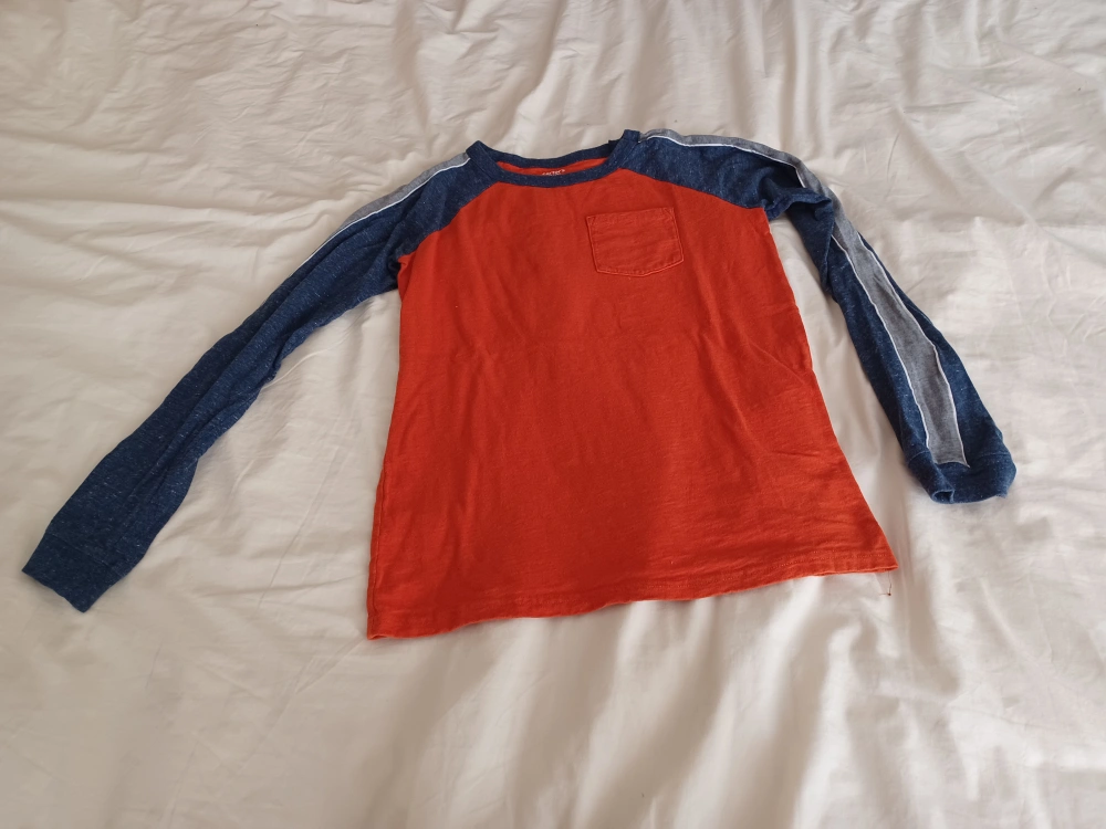 Boys 2 items - red sweatshirt sz 12 (amazon), long sleeve shirt, orange with navy sleeves (Oshkosh) ... smoke/pet and pest free home ... prefer cash payment
