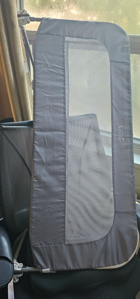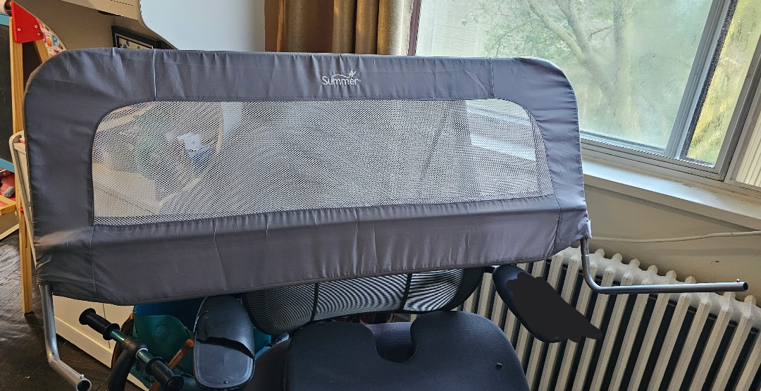 Summer Grey bed rail for toddler and kids for twin, double or queen size beds. Accommodates thick mattresses. Condition is like new, very clean, hardly used and perfect for ur kids. can be folded down as well