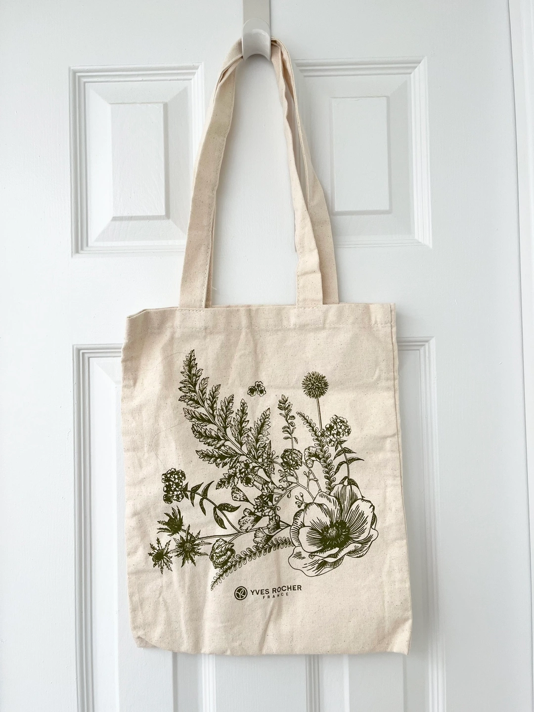 Brand new Yves Rocher canvas tote bag, perfect for carrying extra belongings or for bringing things home from shopping. Have 4 extra tote bags that I don’t need and hoping they can find a new home!