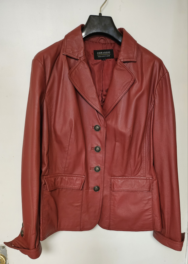 Ladies fitted leather jacket. Blazer style. Fully lined.