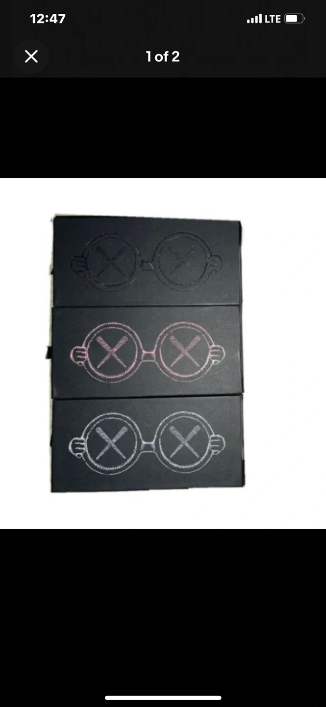 KAWS’ original companion gloves on left and right side of item where glasses usually collapse/fold.