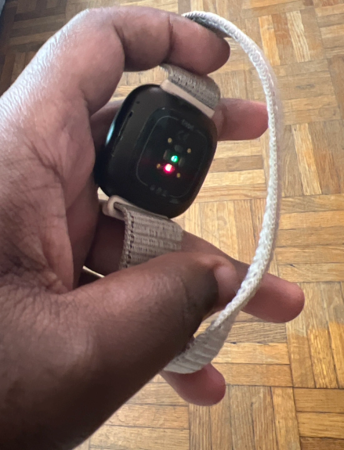 The watch is a 40mm fitness watch that I bought back in 2021 a year after it was released. The watch itself is in good condition and I add a pink Velcro strap and have the original black strap in Large. Charger included. The watch tracks your sleep automatically through each phase of your sleep extremely accurately, has a battery life of about 3 days, tracks your heart rate every minute 24/7 with pure pulse 2.0, has a range of workout you can track and a built in gps that can track your walk extremely accurately.