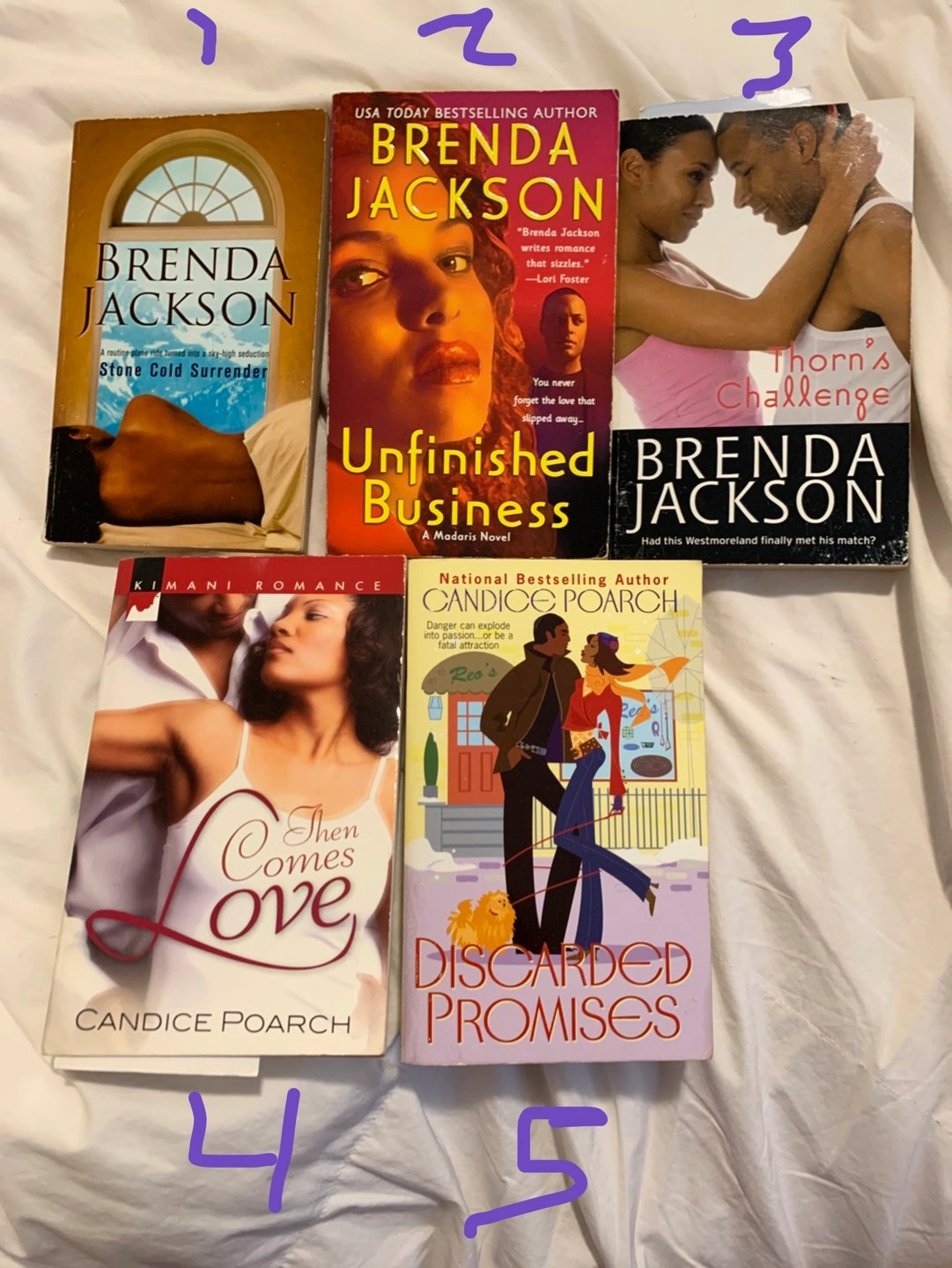 Books 1,2 & 3 are all romance books by Brenda Jackson.