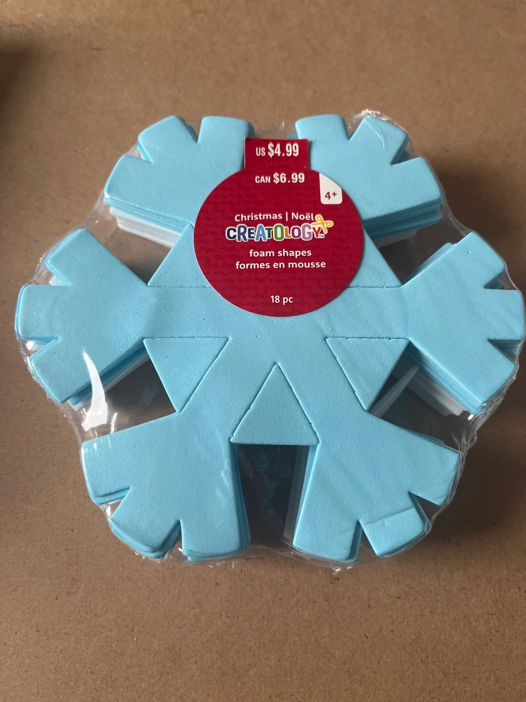 Brand new in packaging, 18 foam Creatology snowflake ❄️ shapes. Half blue and half white.