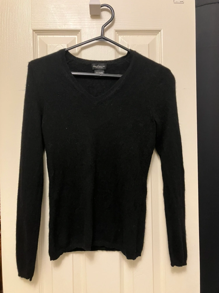 Black coloured, 100% Cashmere, Long-Sleeved, V-neck Sweater. Purchased for $50. Chat if interested!