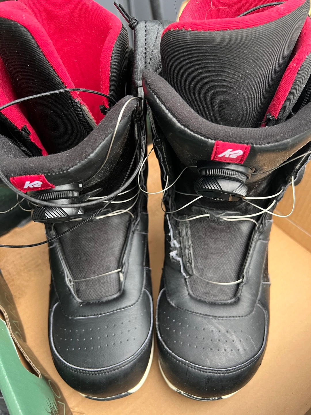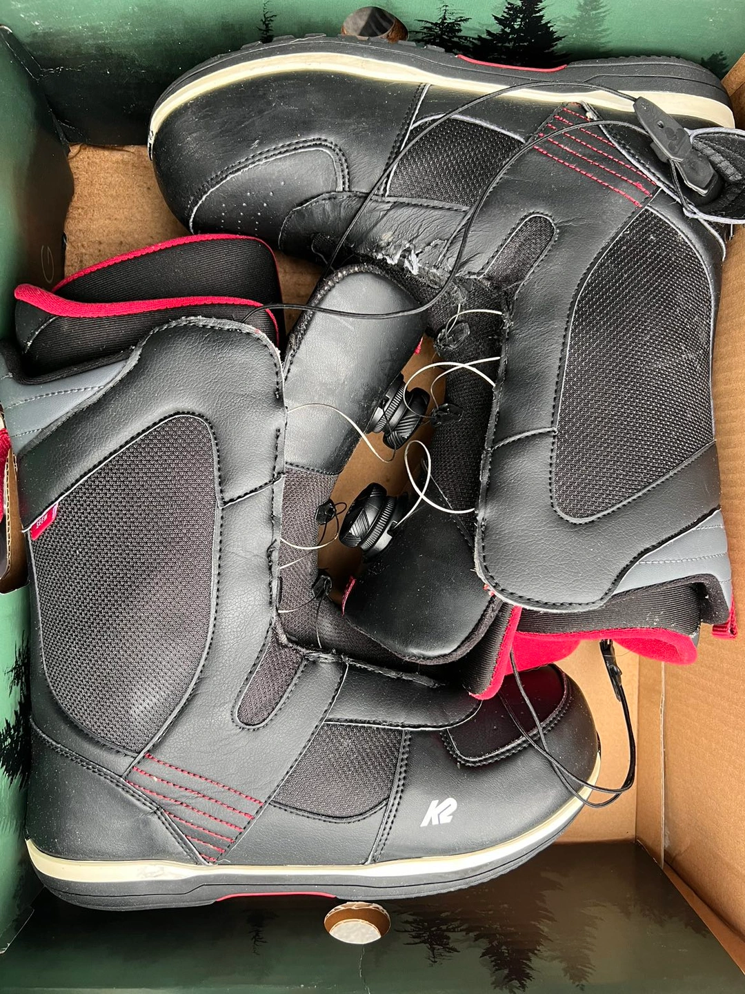 Snowboard boots from K2 that has some wear and tear but overall still in good shape.