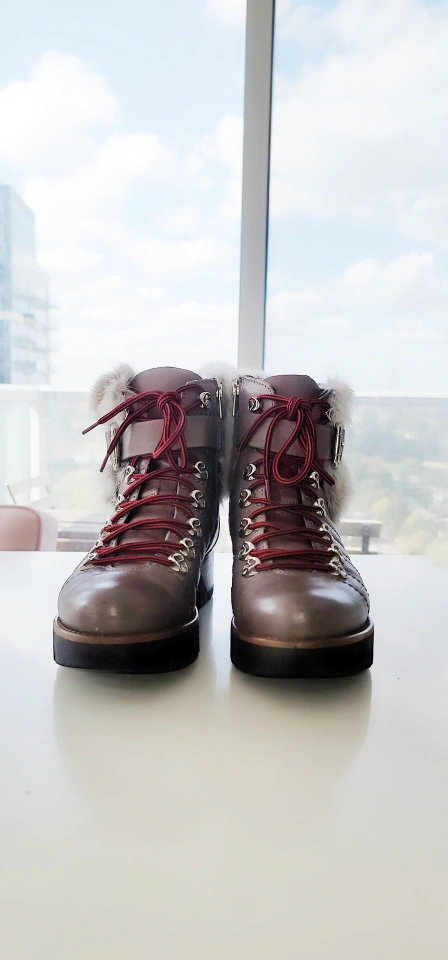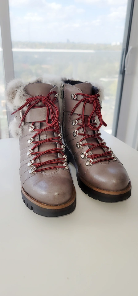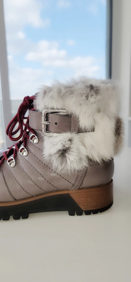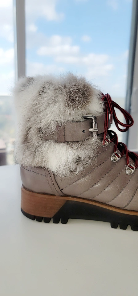 VERY GOOD QUALITY LEATHER, AND MATERIAL INSIDE LINING IS SUEDE WHICH MAKES IT FEEL COZY ON THE FEET. COMES WITH EXTRA BLACK SHOELACE. RUDZAK BOOTS FIT ARE A SIZE BIGGER. VERY LIGHT AND COMFORTABLE. 100% REAL RABBITS FUR.