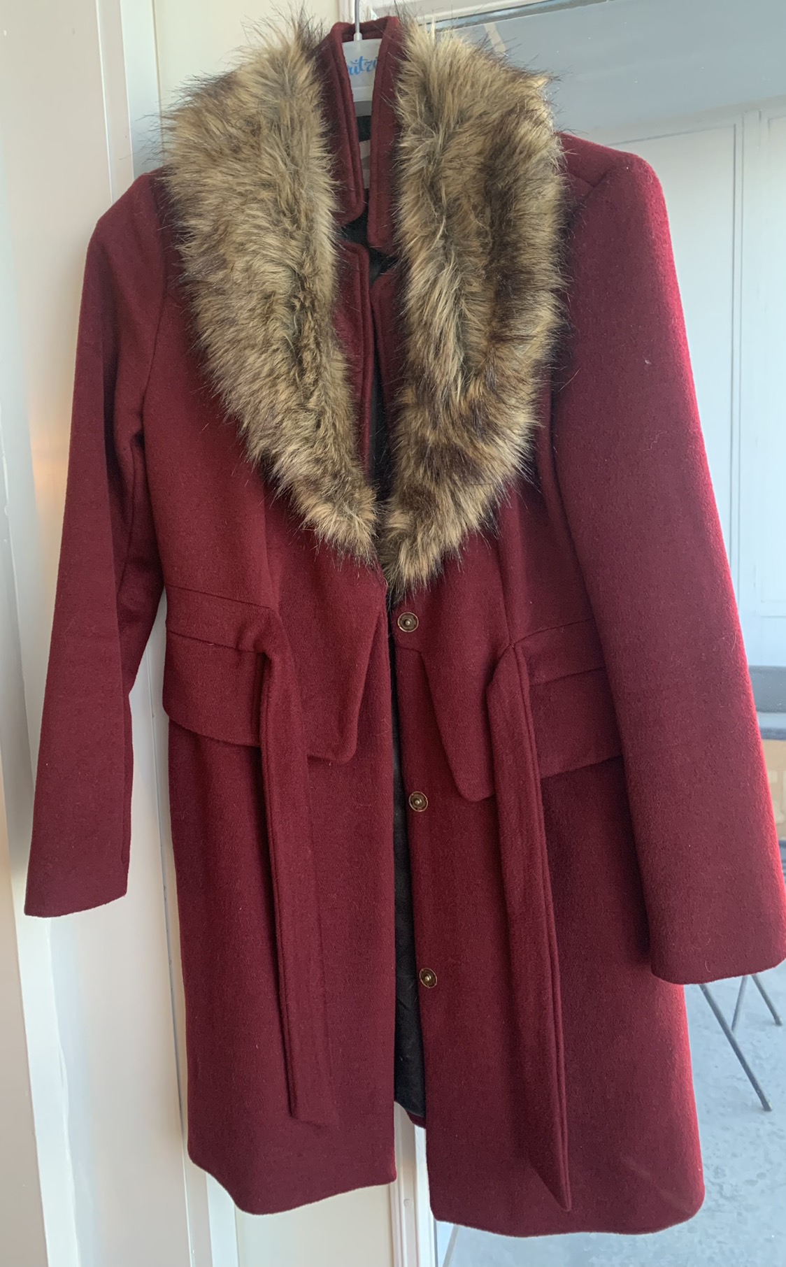 1 / 21 / 2Buy & SellDressy Burgundy CoatDressy Burgundy Coat$25Lined. Attached faux fur. Clasp closure. Worn once.ConditionLike newSizeSmallBrandForever 21WHERE TO MEETCelebration squareView MapSELLERMelissaFairview16612 reviews1 chats·3 favorites·142 viewsSEND CHAT TO SELLERHi Melissa! I’m interested in your listing.Hi Melissa! I’m interested in your listing.Get the Karrot app to chatSign In to chat