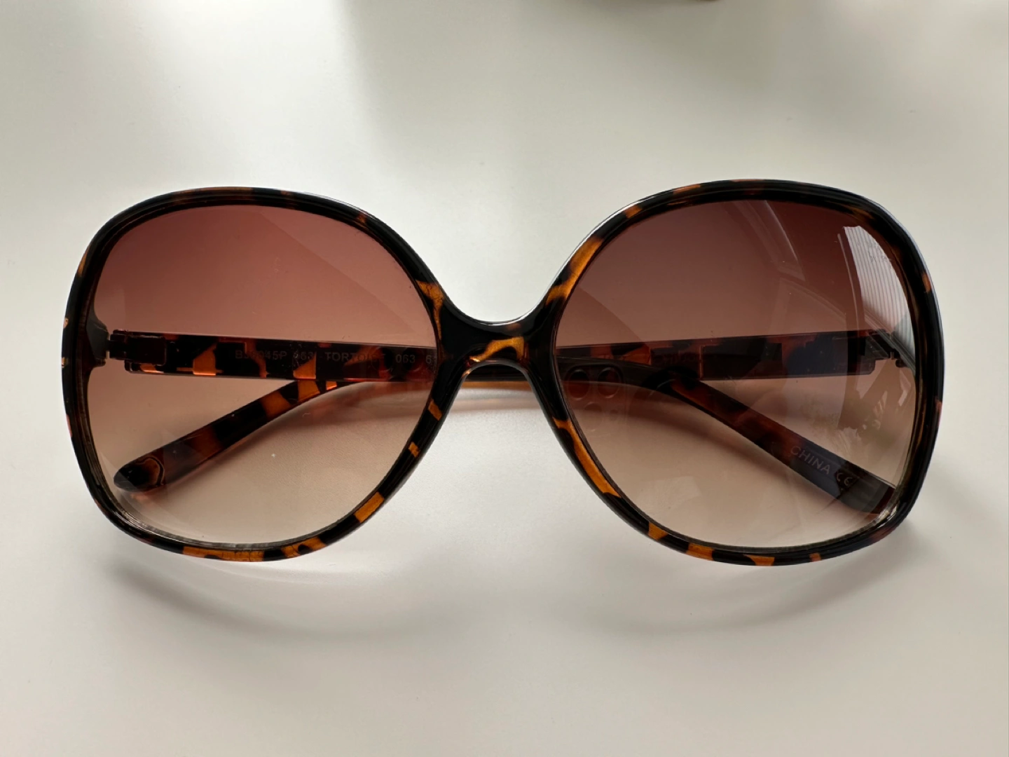 Betsey Johnson tortoise frame sunglasses with gradient brown lenses and gold stud detail on the arms.