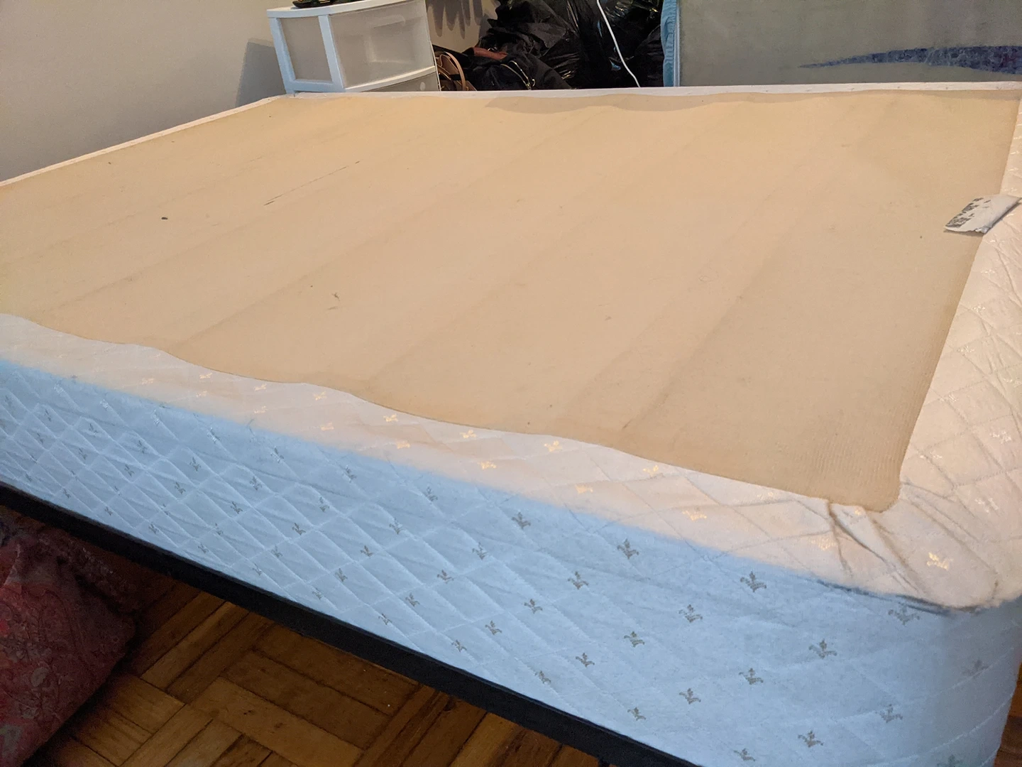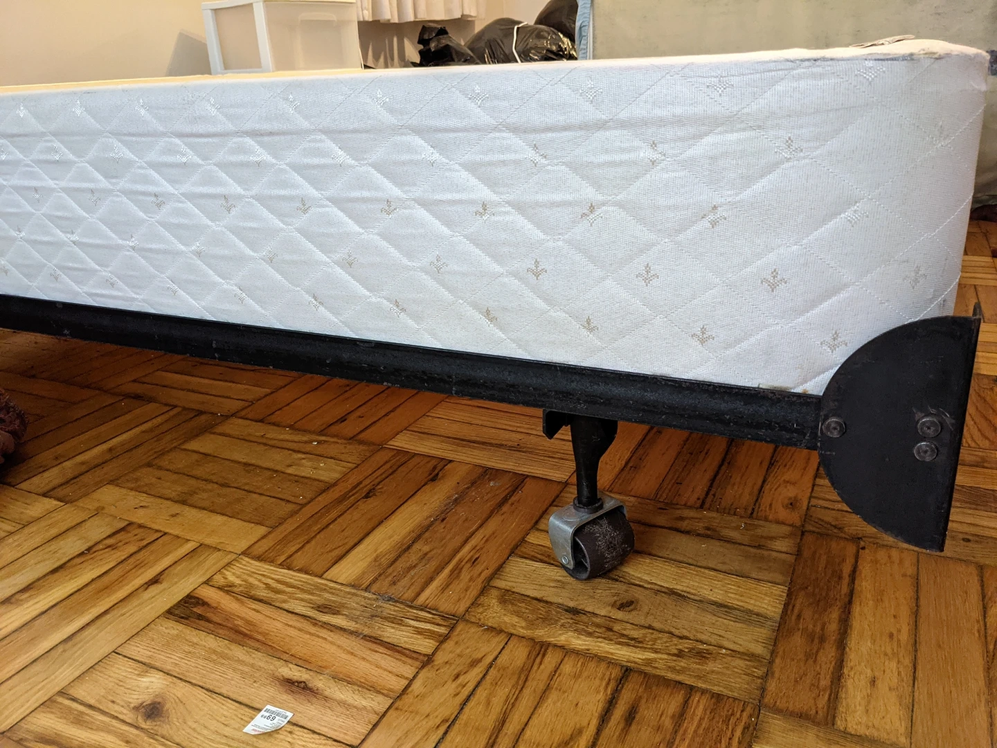 Full bed frame with box spring and mattress