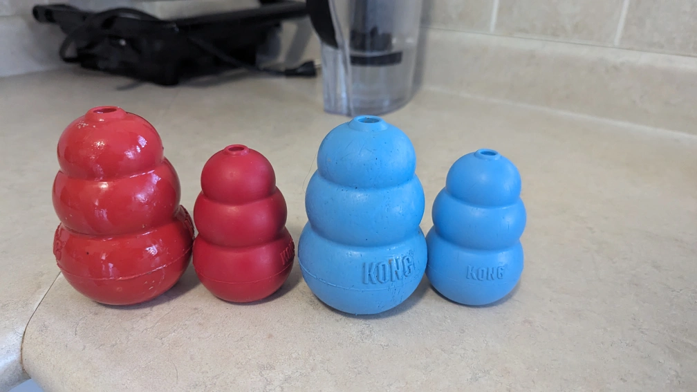 Kong classic toy dispensing treat. Medium and Large Size. used but many life still in them. I have a bernedoodle and outgrew them quickly. Take them all for one price