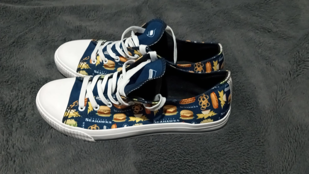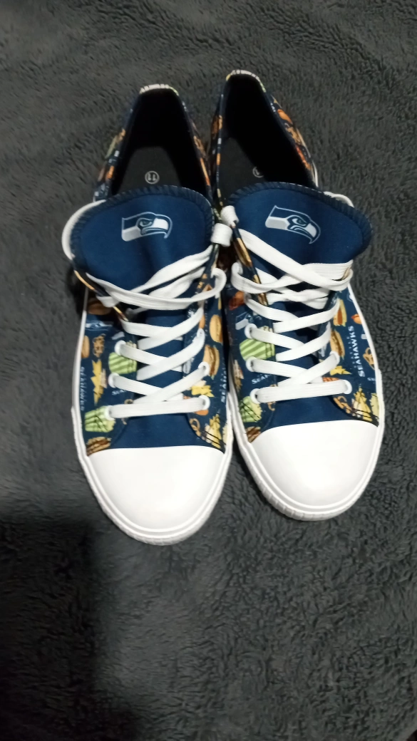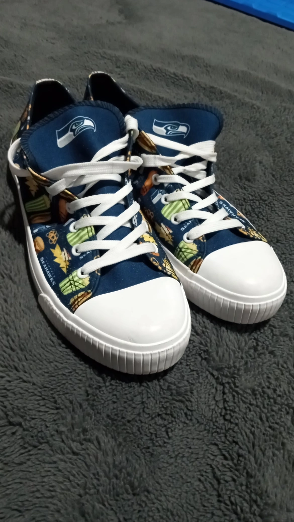 Seattle Seahawks sneakers.Cash only , only available for pick up at Yolks Restaurant, Woodland Ave and Hastings St.