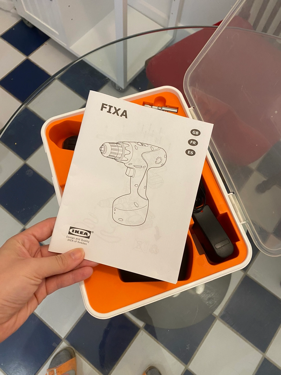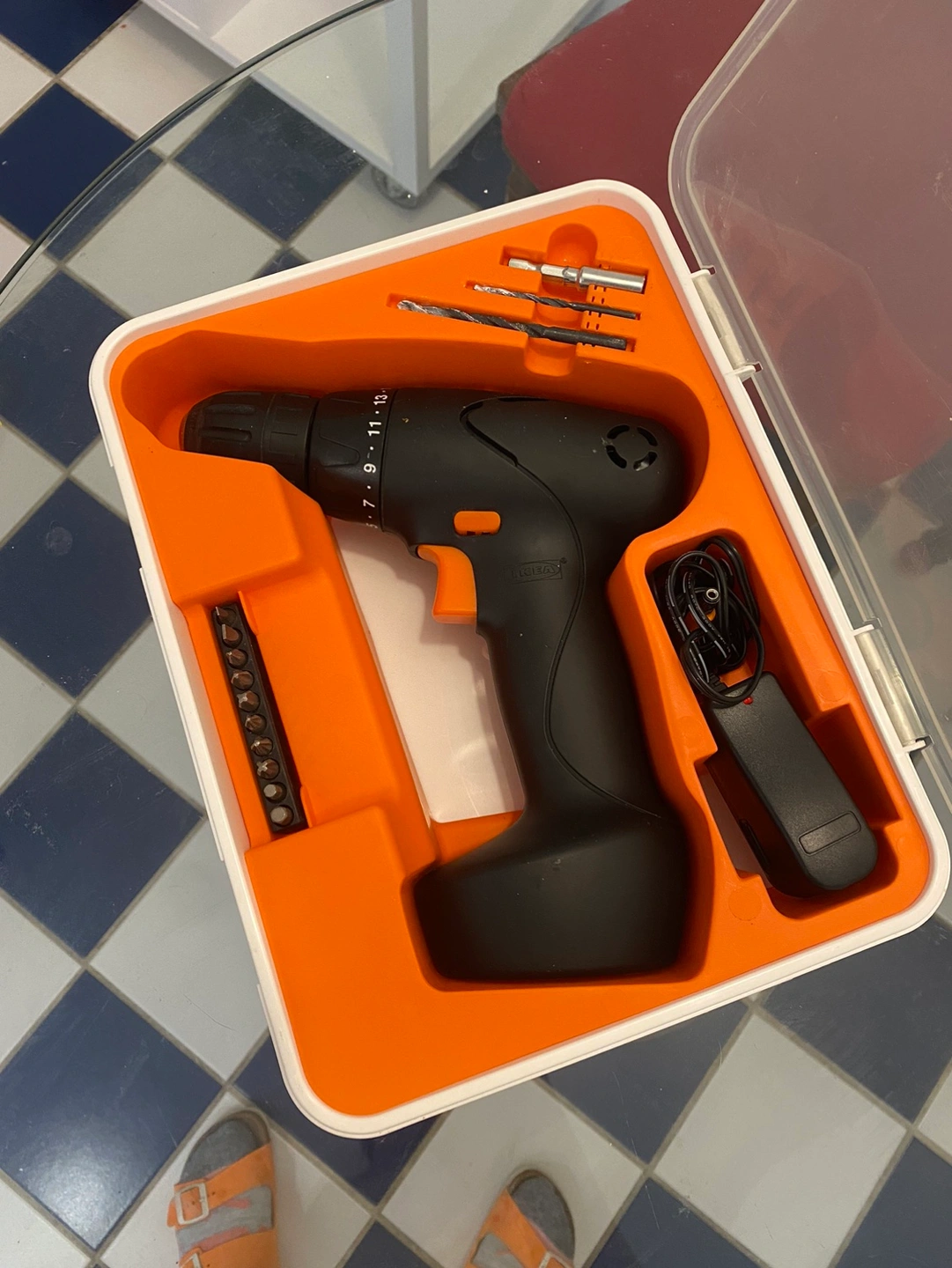IKEA Fixa drill (not working) with plug-in charger, case, manual and all accessories.