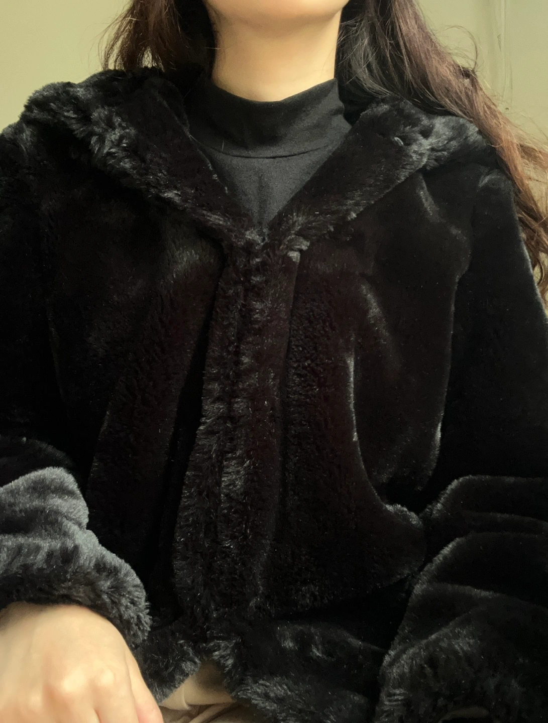 ALMOST NEW BLACK ZARA FUR COAT with Hood. Size M. I usually wear S but I like wearing this on the bigger size. Very comfortable and warm. Perfect for winter. Closes up completely with hooks. Feels very luxurious.