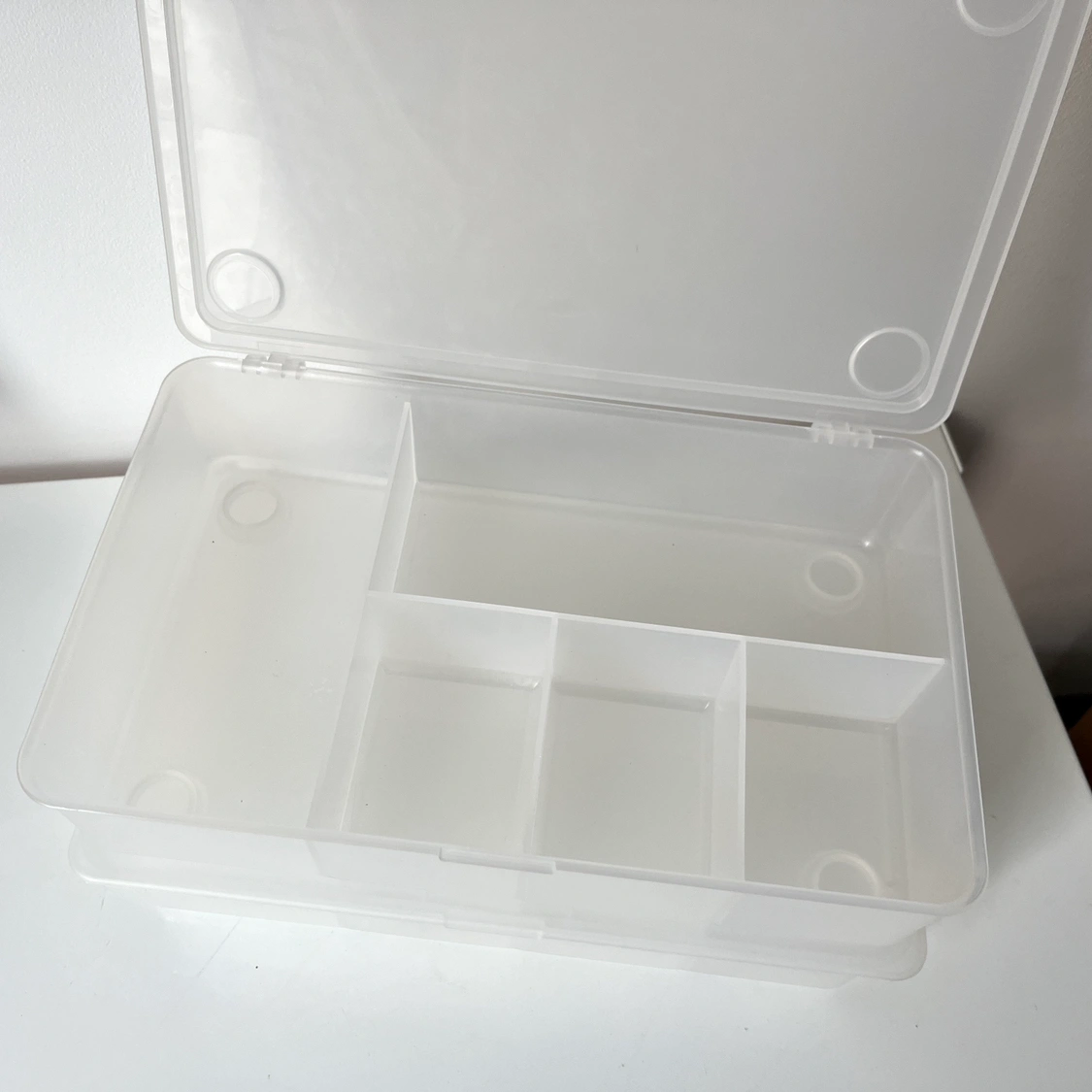 Stackable with nice handy compartments for sorting. In excellent like new condition.