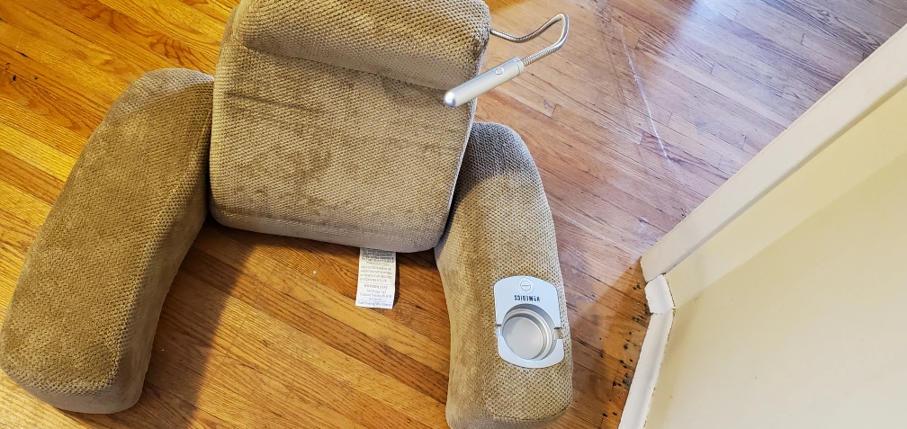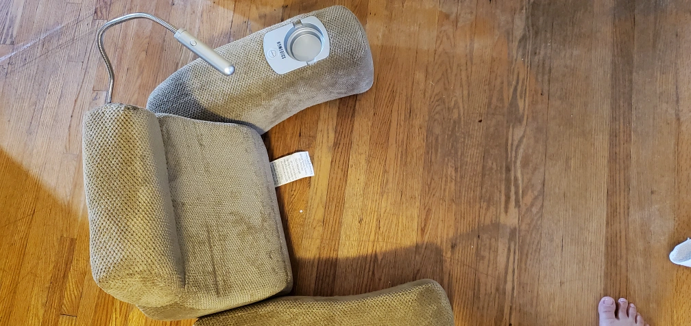 perfect working order & like new , vibrating back massage & attached and adjustable spot light. good for reading, crafting, etc