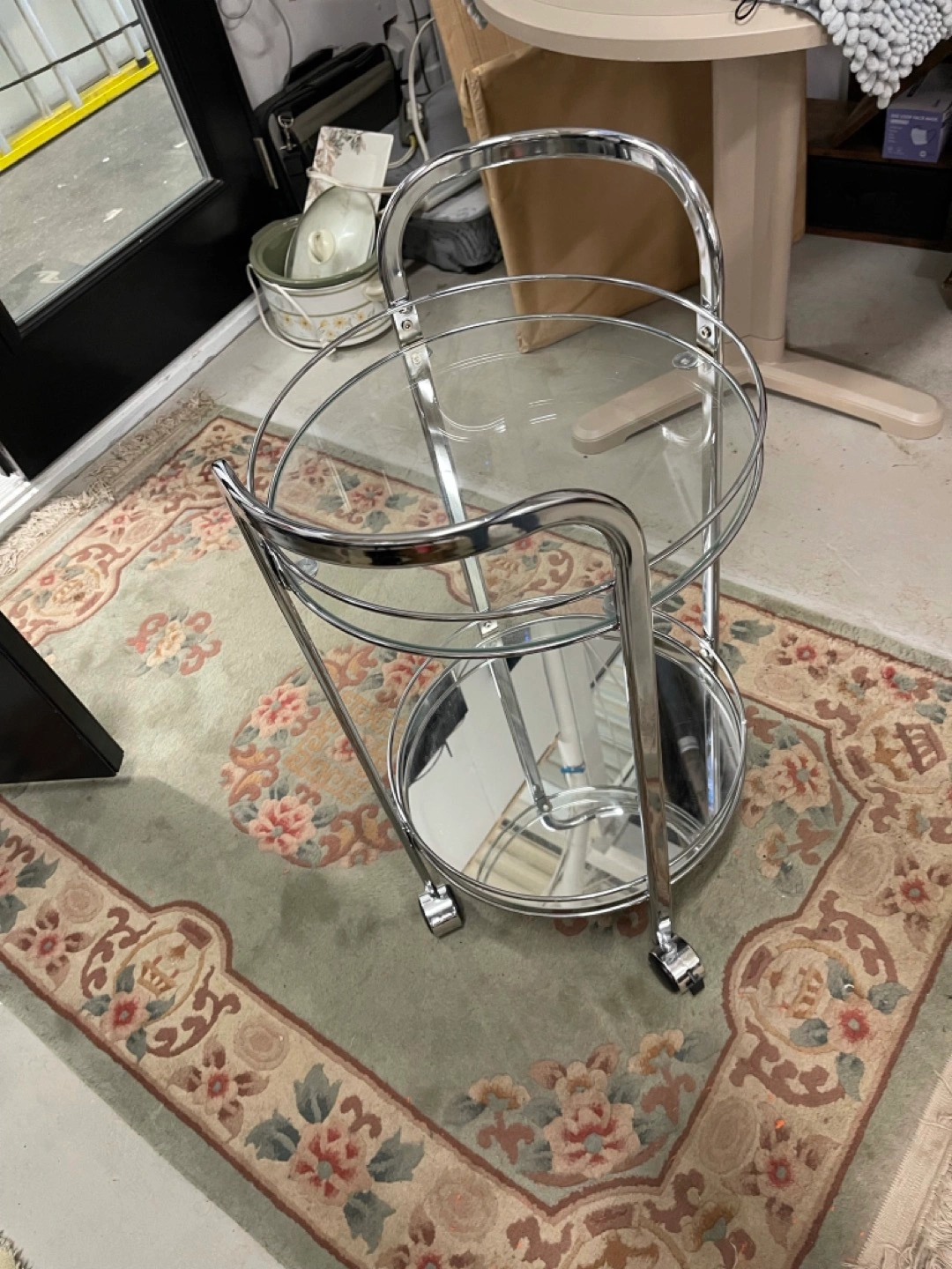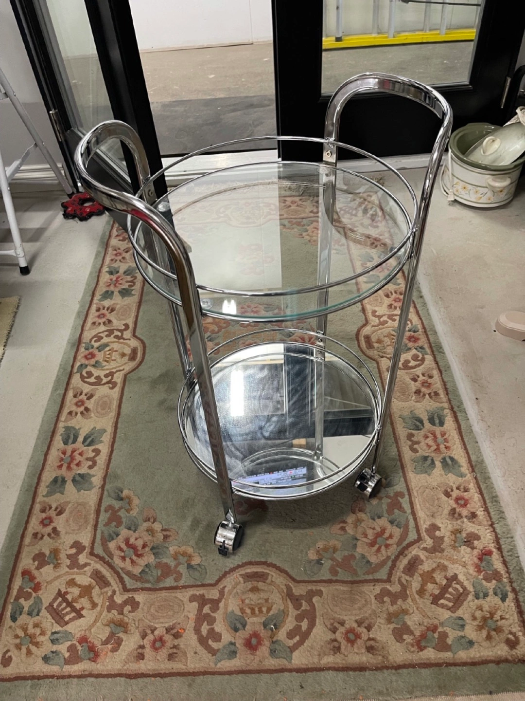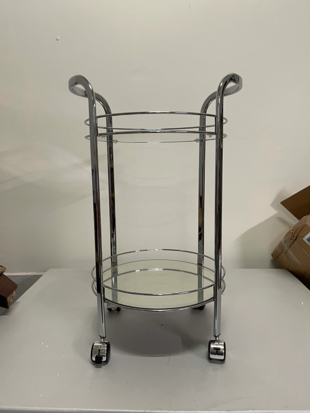 2 Tier Glass/Mirror/Chrome Bar Cart NEW
