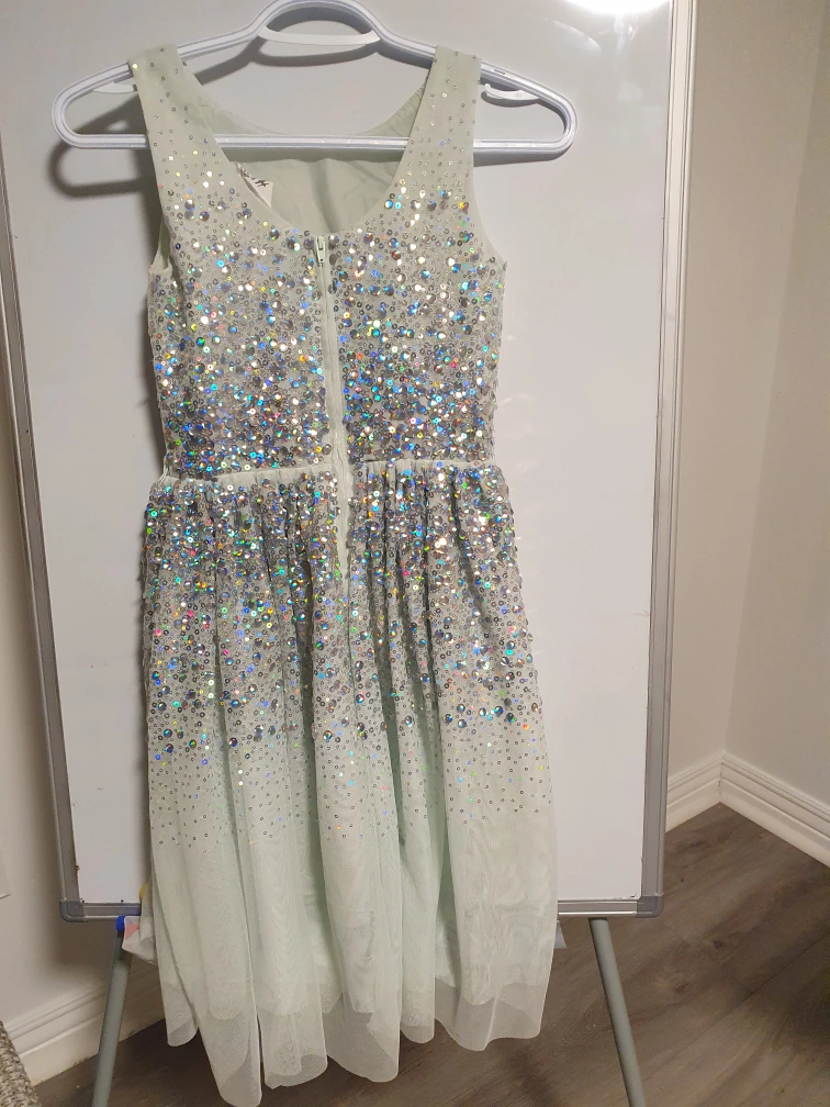 A beautiful pre-loved dress. My daughter got this dress as a gift from her grand parents. She loved it however, my child wore it only a few times as she is growing faster and this dress doesn't fit her well now. This dress is still like new. I wish any little heart to enjoy it.
