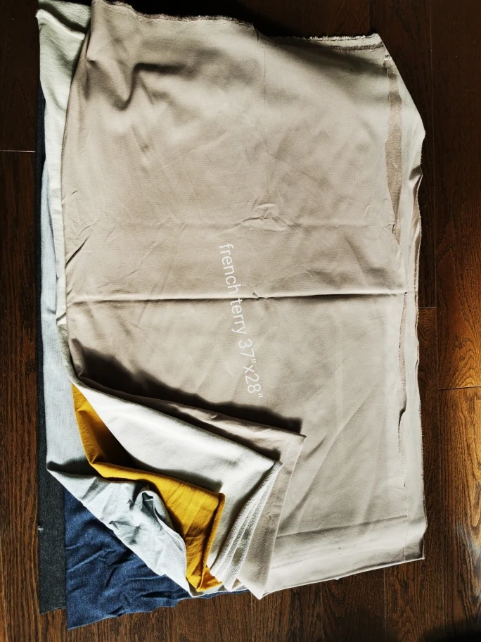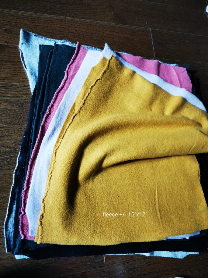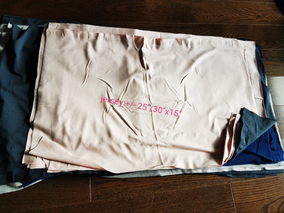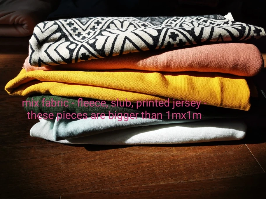 larger scraps in various fabric (jersey, fleece, slub, french terry) good to use for small craft projects or for pets' bedding..