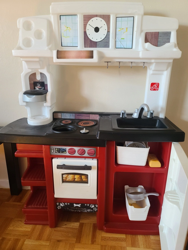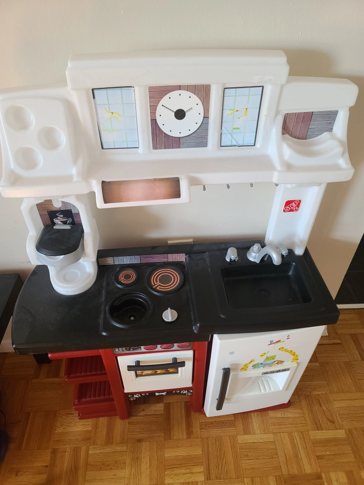 Kids toy kitchen in good condition but some pieces are missing. Selling as it's not being used anymore.