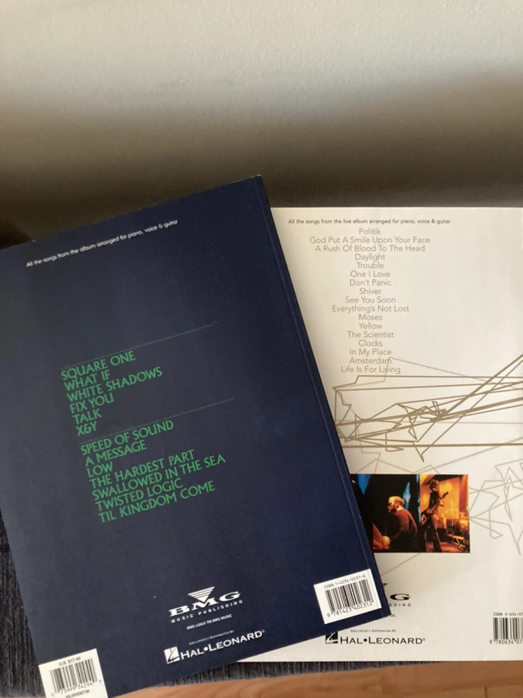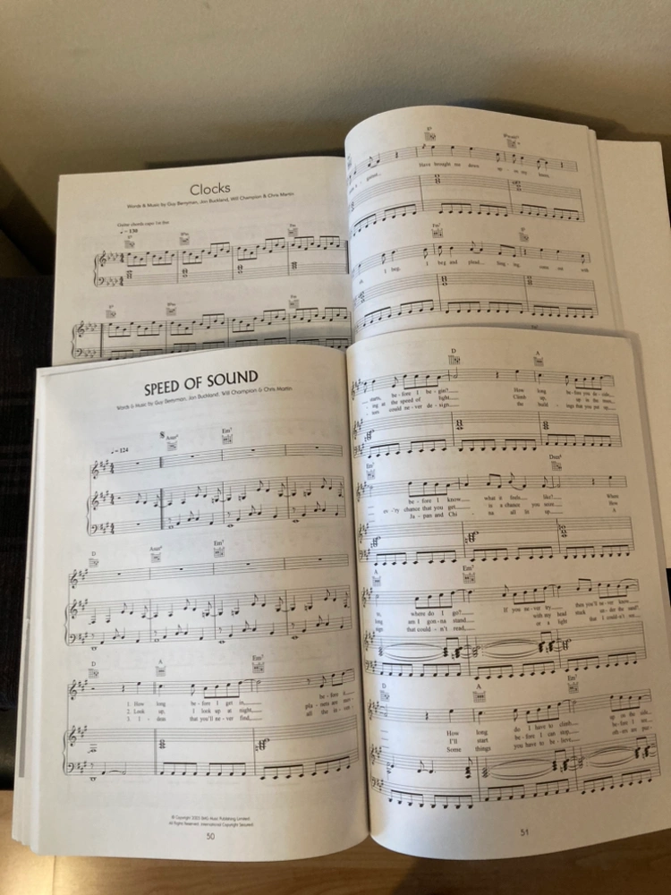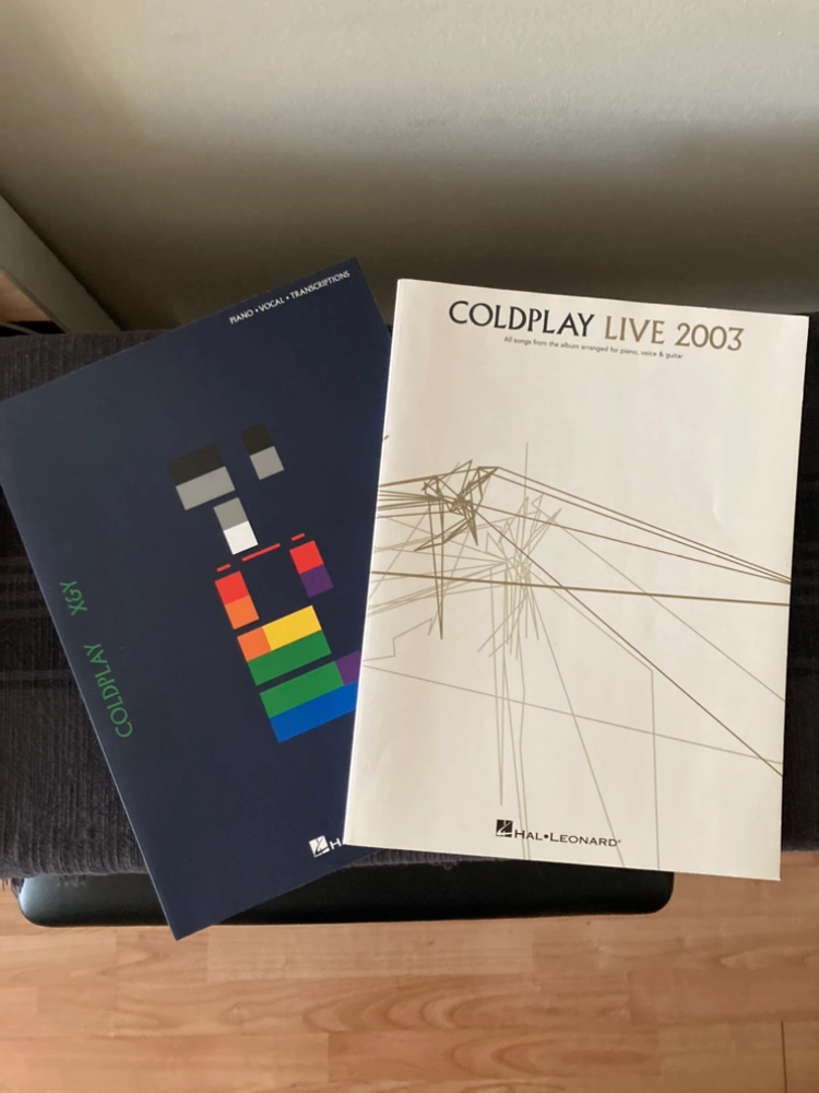 Coldplay sheet music (piano, guitar, voice). Excellent condition.. Only used a couple times. Beginner/intermediate level.
