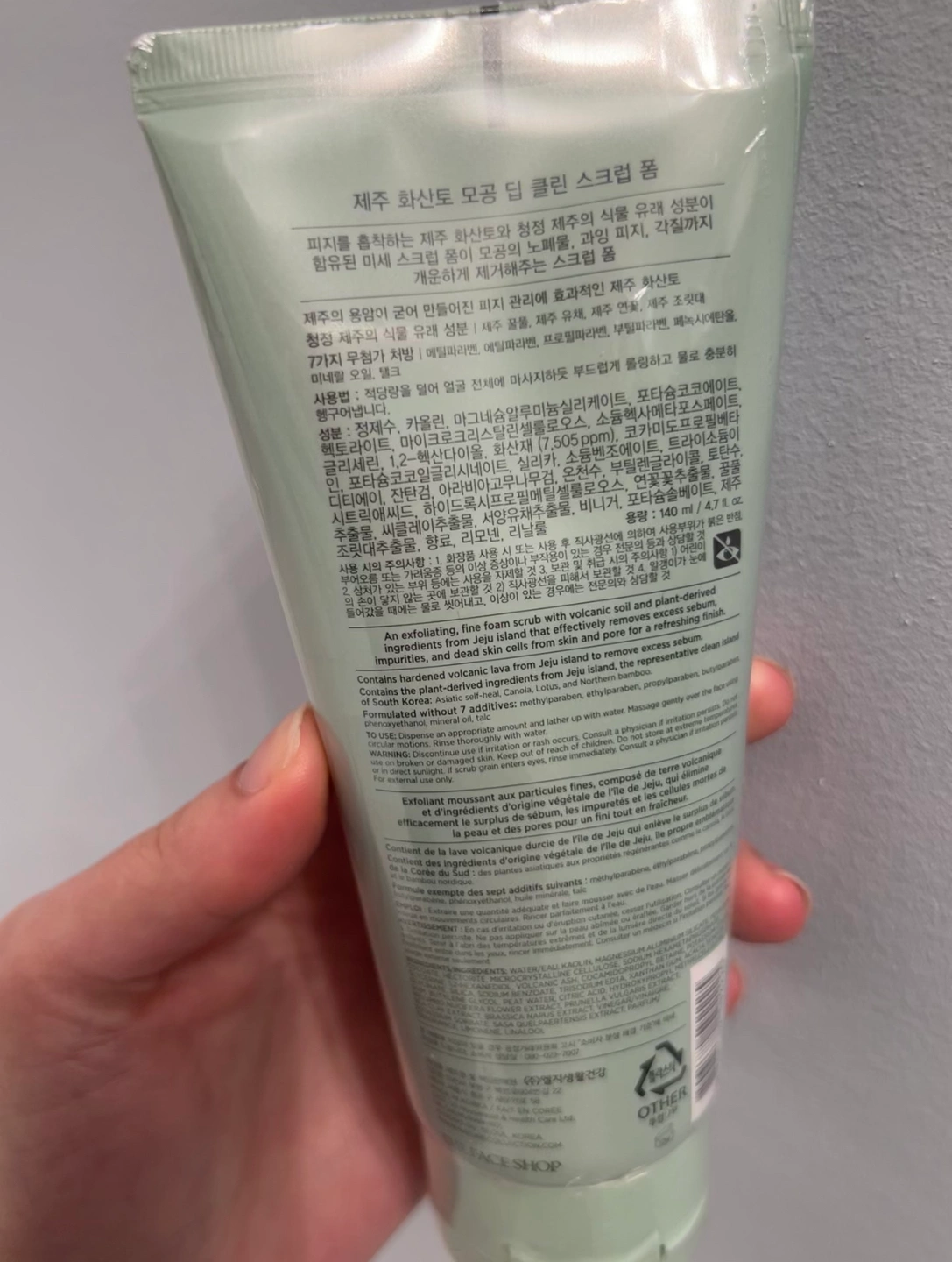 Jeju volcanic lava deep pore cleansing foam scrub from the face shop.
