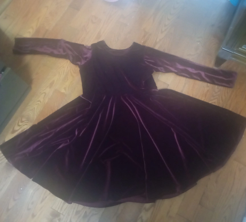 The first picture is not the exact maroon velvet dress, however it is what you will probably look like when wearing this.