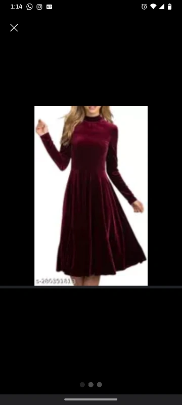 Elegant maroon velvet dress for sale! Embrace timeless beauty with a flowy silhouette that might not be fitted around the waist. However, any belt may do the job.