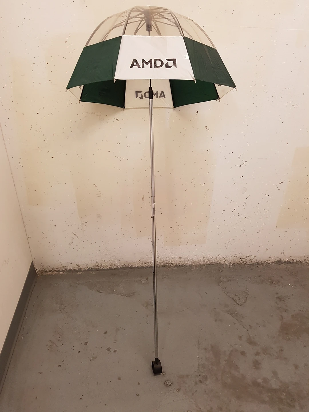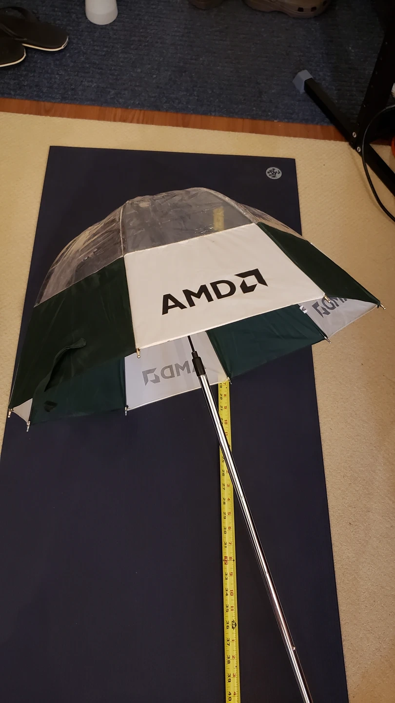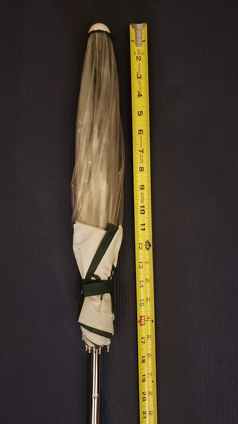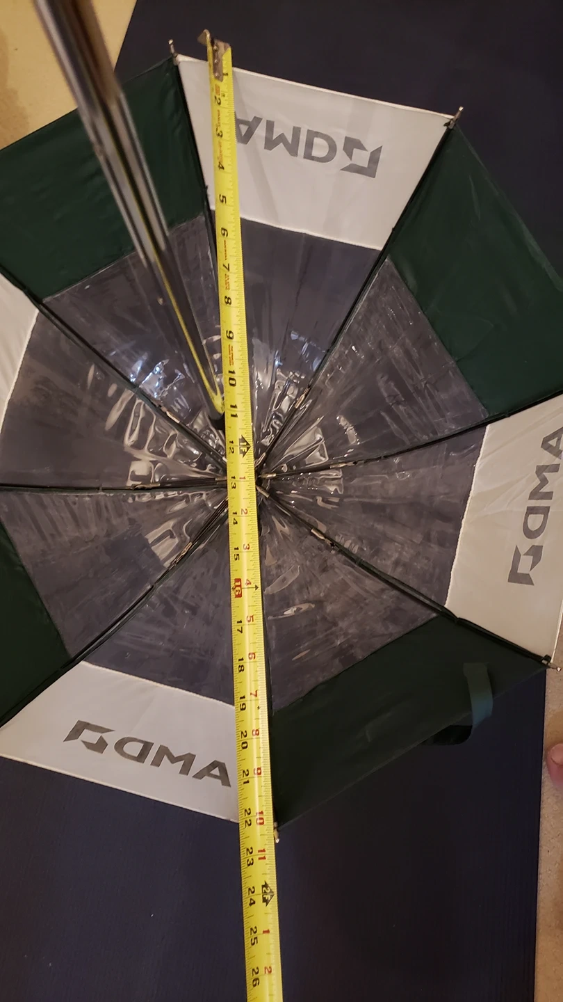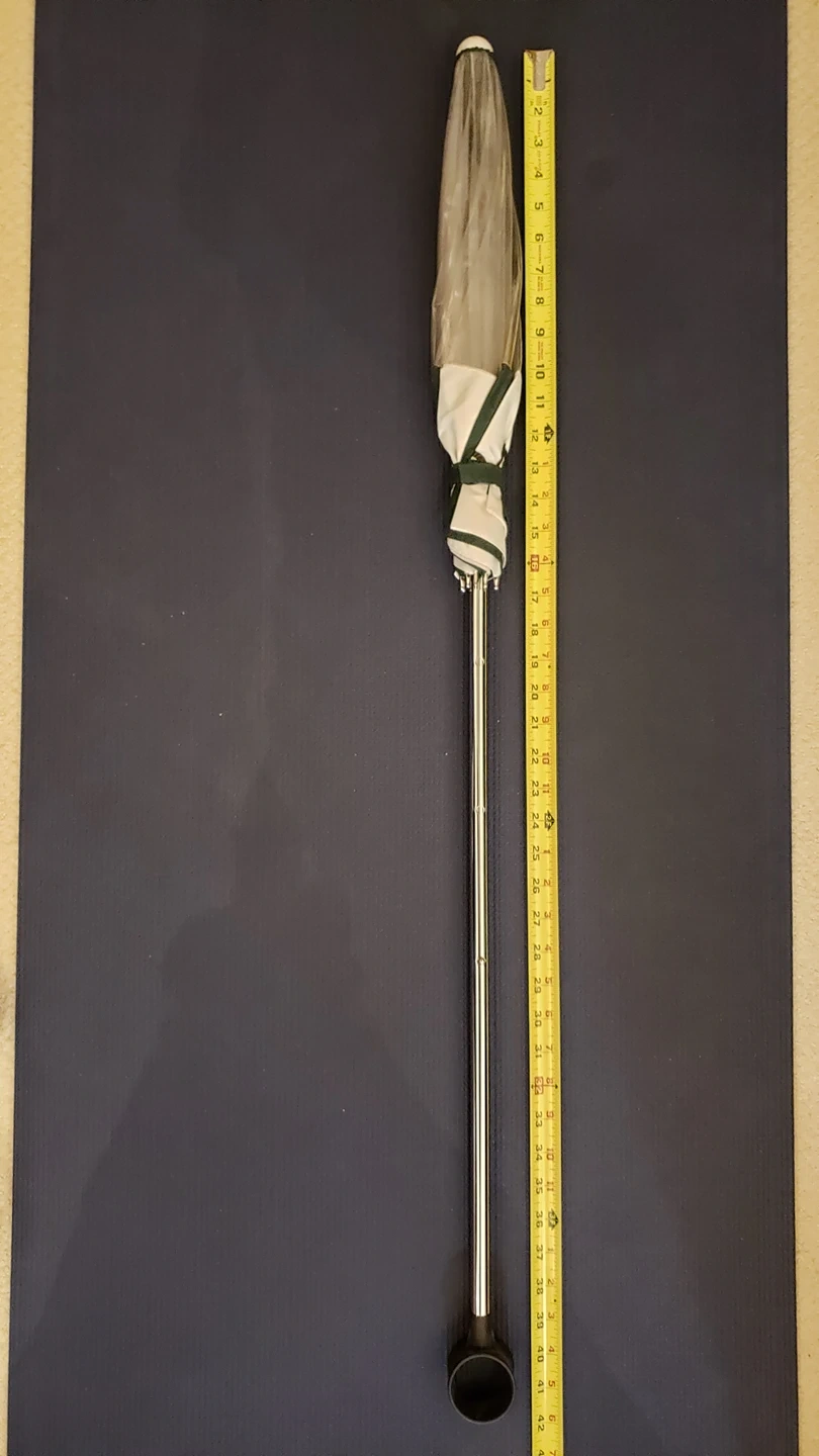 Umbrella for your golf bag. Umbrella is height adjustable. Bottom of the umbrella pole is also a golf ball scooper. Swipe to see measurements.
