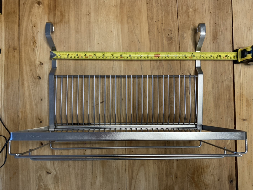 Free up counter space, conveniently hang your dish rack. Requires wall mount rod, foldable when not in use.