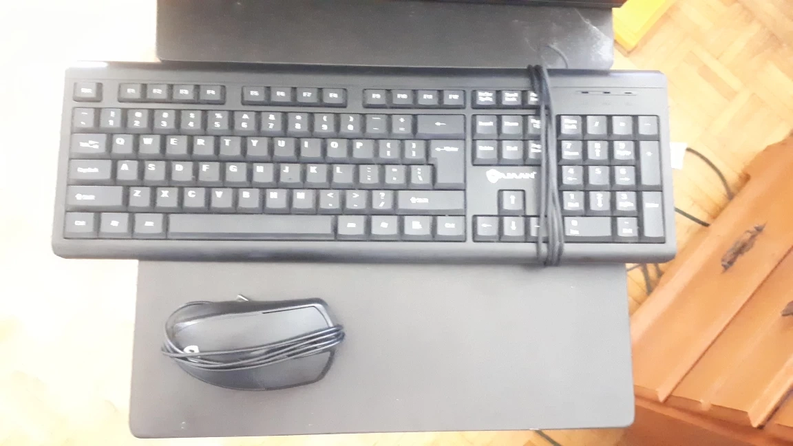 Comes with power cable, mouse and Keyboard.