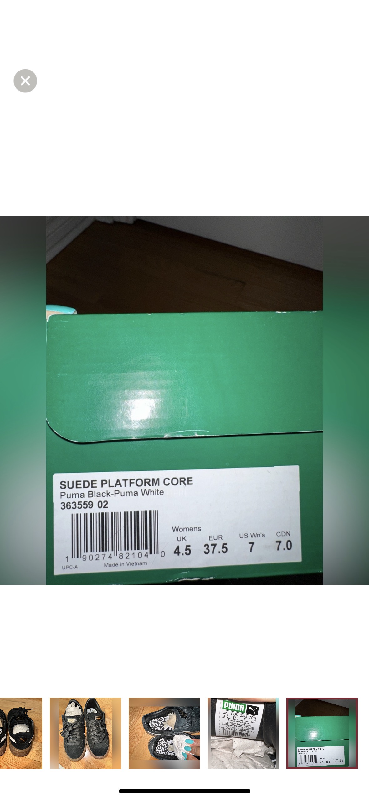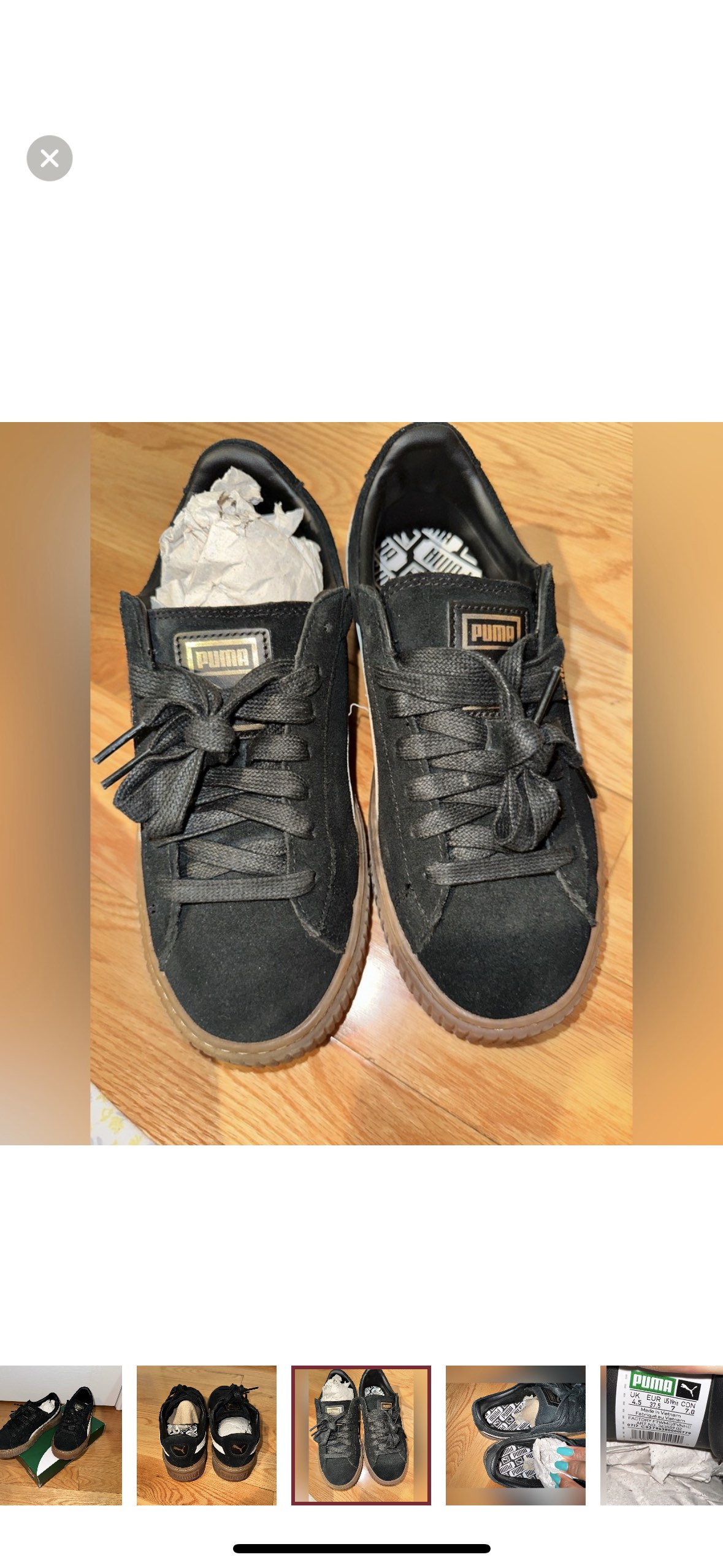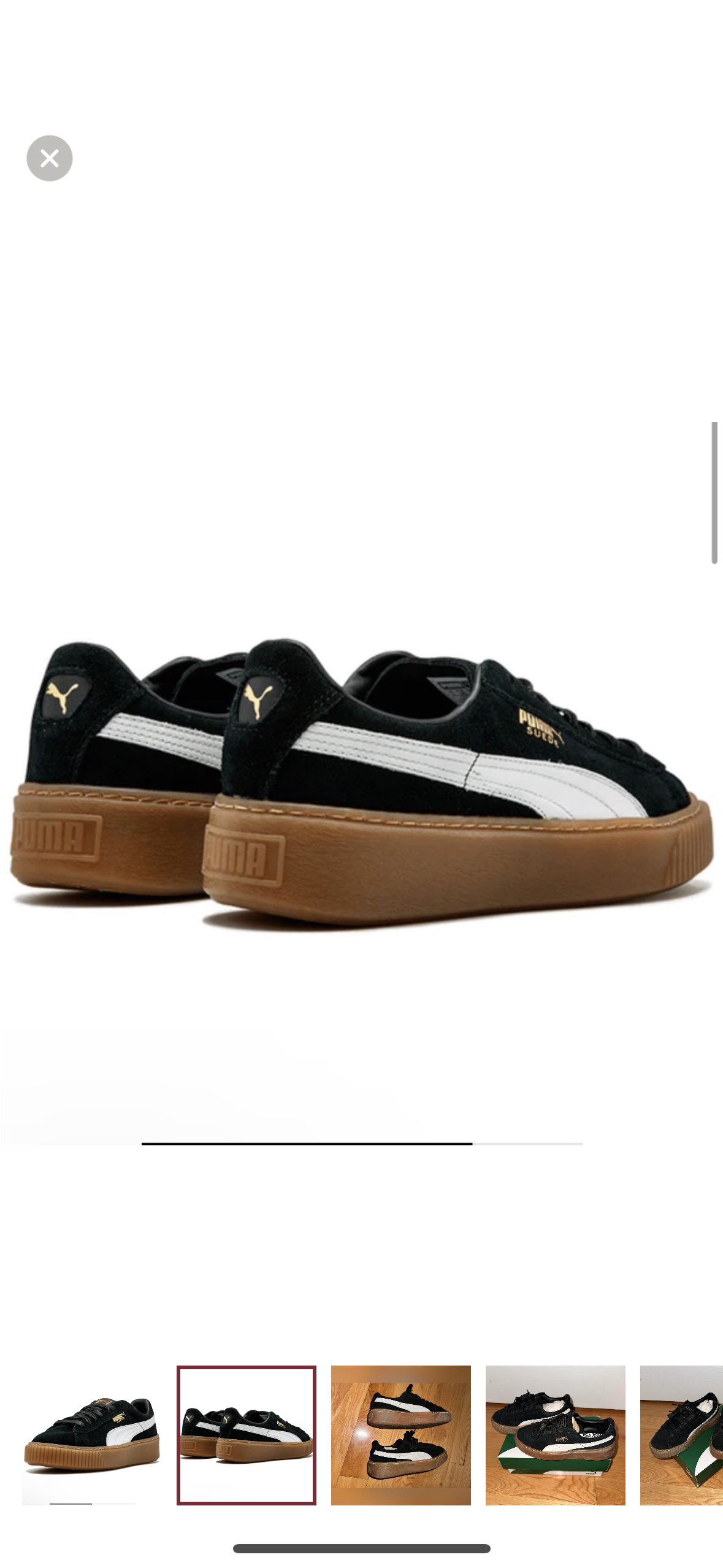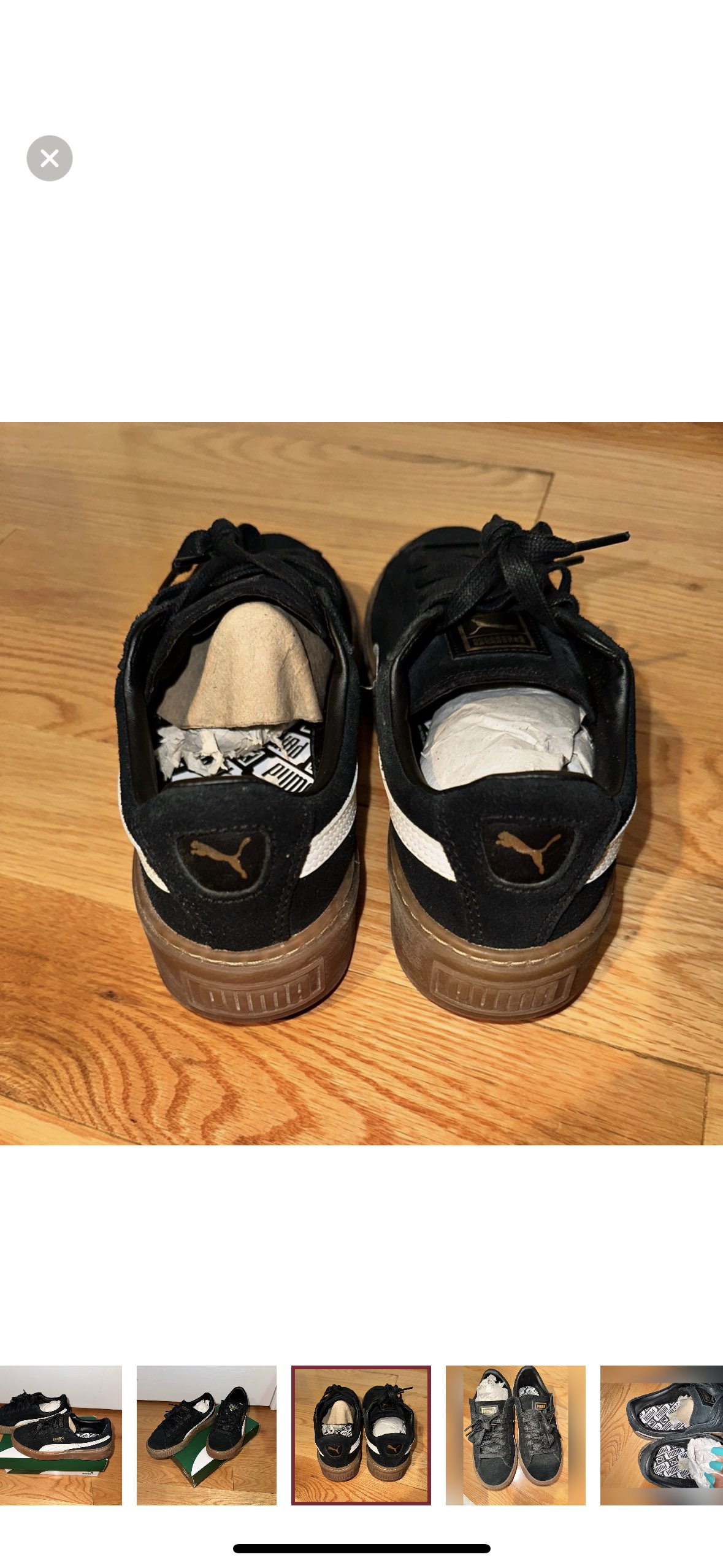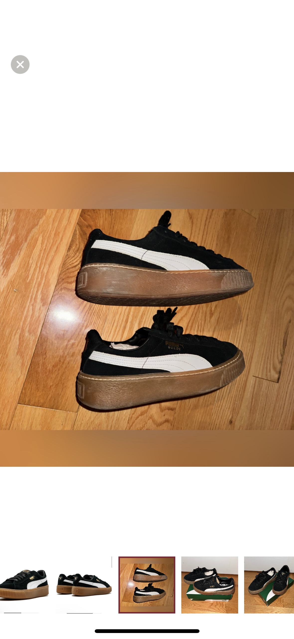 399- Suede platform pumas - gum bottom shoes - Womens size US 7, 37.5 - They fit a little tight for me, that’s why I am selling - Have worn a handful of times - Everything original - Sides of the gum could be cleaned better, I didn’t really have time to do it properly - Suede is in very good condition - Clean! - Soles are clearly not worn down - These are super cute shoes, you can dress these up or down - Definitely a favourite of my collection - Very beautiful colour-way - Round toe box - Thick platform bottom - Black & white colour way - Released in 2018 Negotiable! 👟