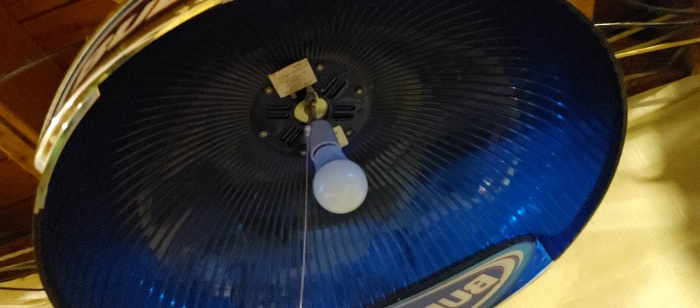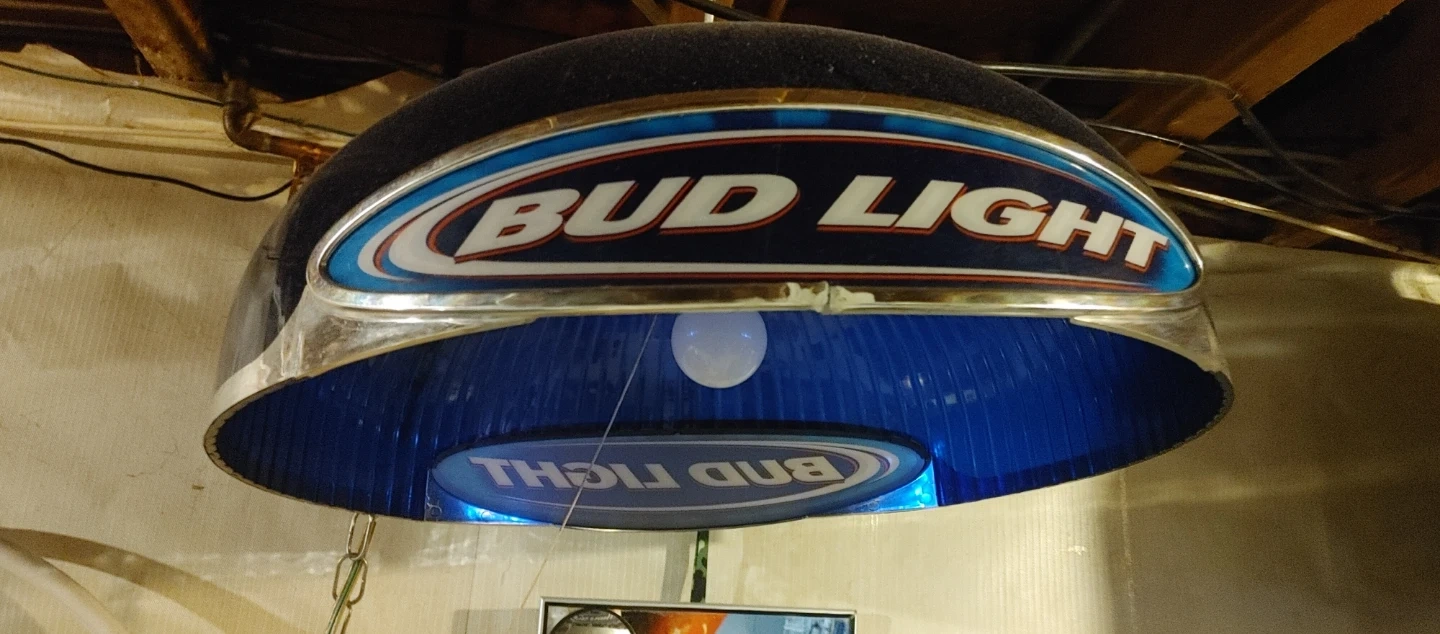 Here's a Bud Light hanging light, perfect for a bar or rec room! It adds a cool, retro vibe to any space