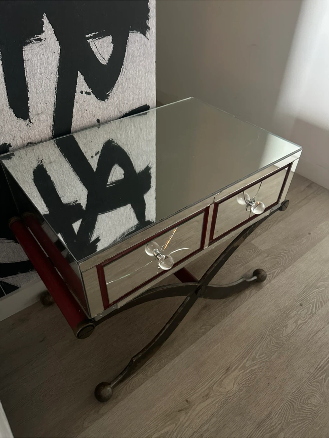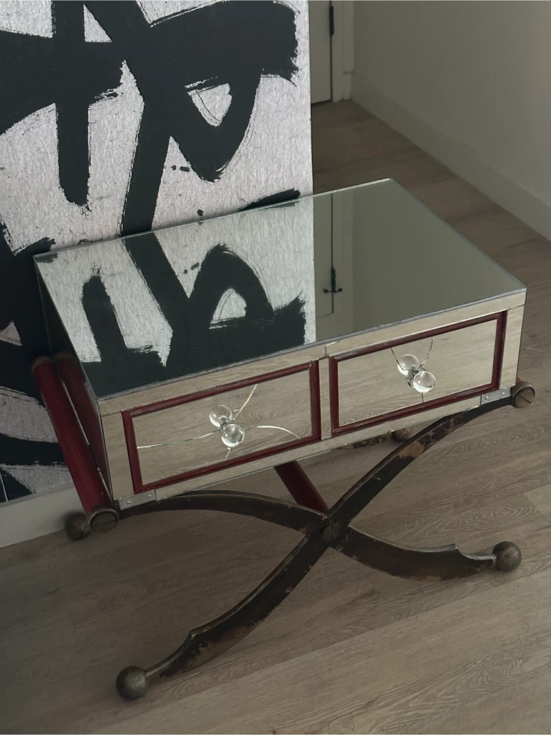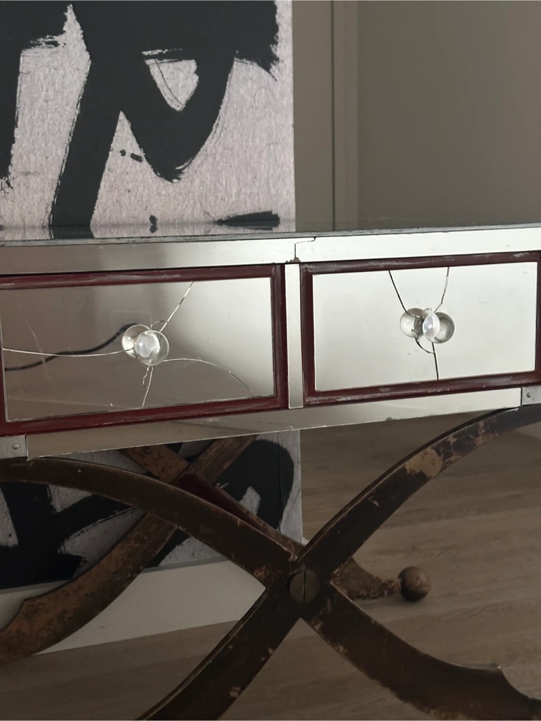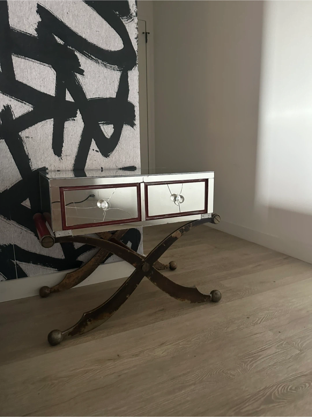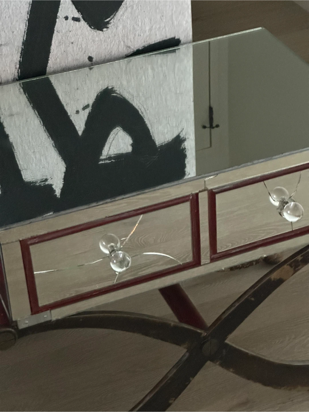 Selling an antique mirrored vanity table. Please note that there are cracks on the mirrored drawers as shown in the pictures