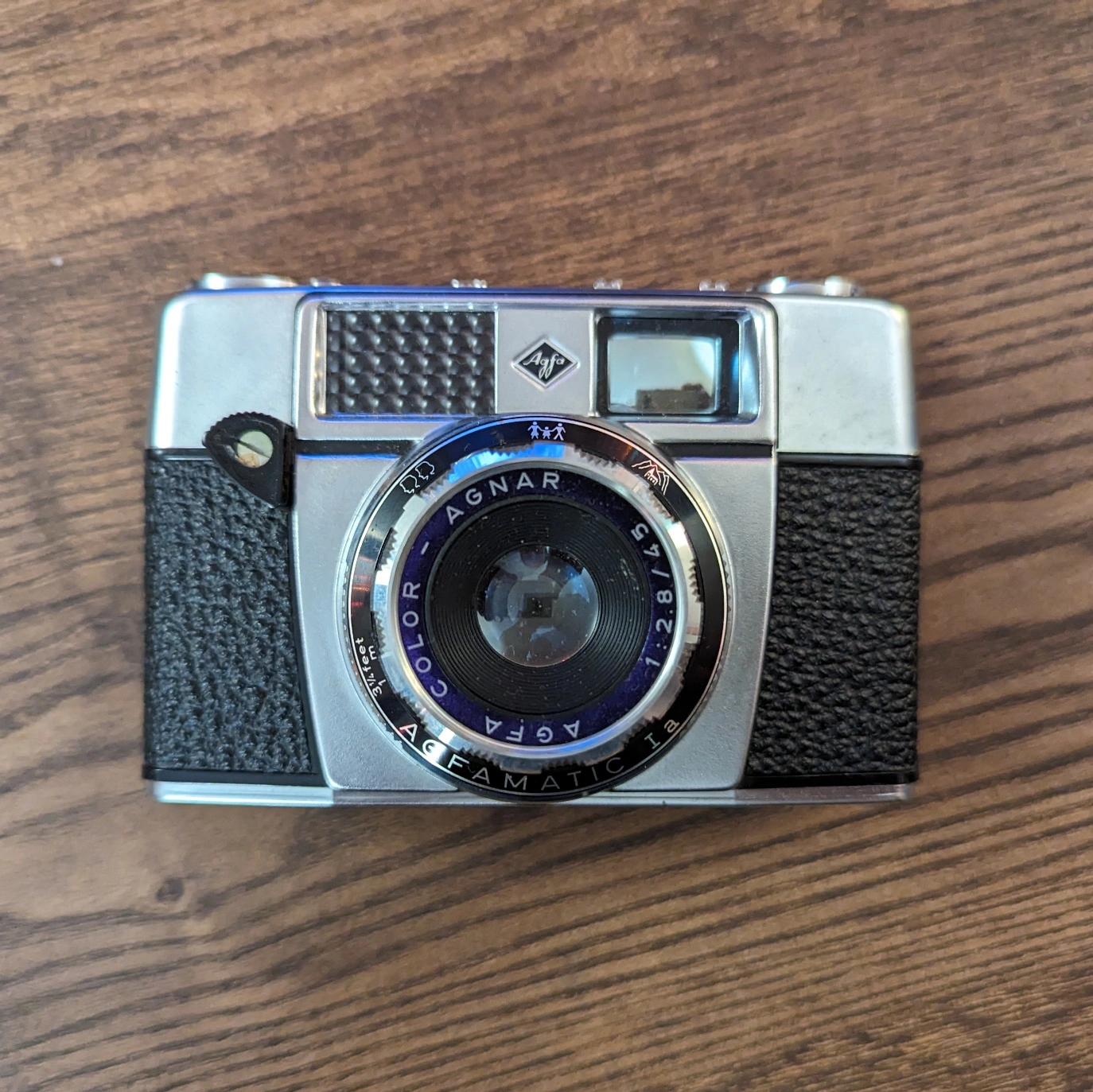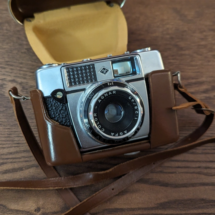 43Vintage Agfa Agfamatic/Optima A1 camera for sale, complete with leather travel case/carrying strap. Originally produced in 1962, made in Germany. Don't really know too much else about it, here's a Wikipedia page I found: https://en.m.wikipedia.org/wiki/Agfa_Optima_1a And also an eBay listing for one: https://www.ebay.ca/itm/294372031571?hash=item4489f0bc53:g:ECoAAOSwRO1hMLXS&amdata=enc%3AAQAIAAAA0EA6%2FuV%2BTy47g3fcpQ3iNK9WFVNbtx6gQ%2BFoVuZztJ3JzqtU4cPbW6GzVyaGrLGSMn2sJEDejuzWWQFvyUT8wghugKpodXsZezncHgVtIFeeH6B1cKTBSoxgSuFBBeTHhKfTds5MdhH2ajyv8KFd0CZPxeVdMDpJ3CbjDT9FFOoU2MGT5uXVRp7lWUUD9Te65UcMy6UonGrexOrYYCKu6PSvEQ3hWrimtjXjJXfMLQIqAHJ6PU6PL0QTvyaQaOQHq9axDOkmJPG9KQiGizGvgAk%3D%7Ctkp%3ABk9SR-iy082-Yg That has it listed as "mint" at over $80USD and I'd say mine is in better shape. Available for pickup near Eglinton Ave W and Avenue Rd in midtown Toronto.