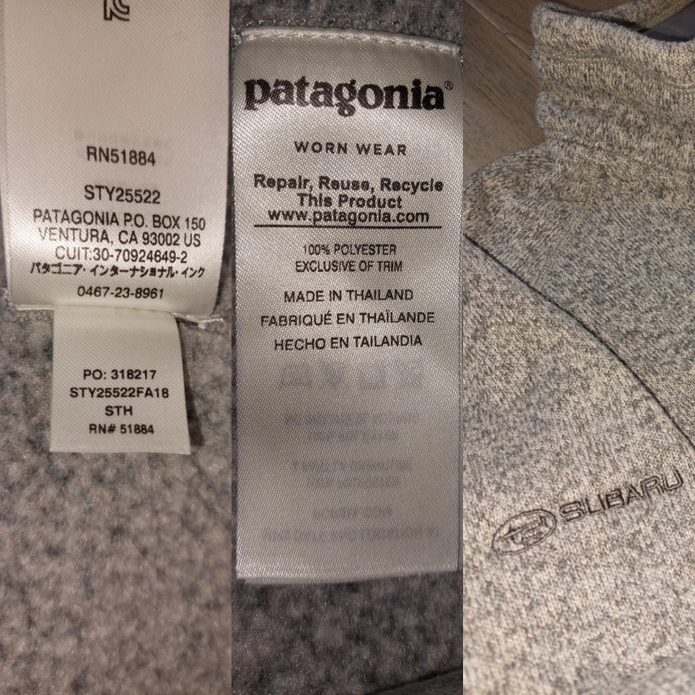 Mens adult Patagonia 1/4 zip better sweater heather grey with Subaru logo embroidered on right arm sleeve