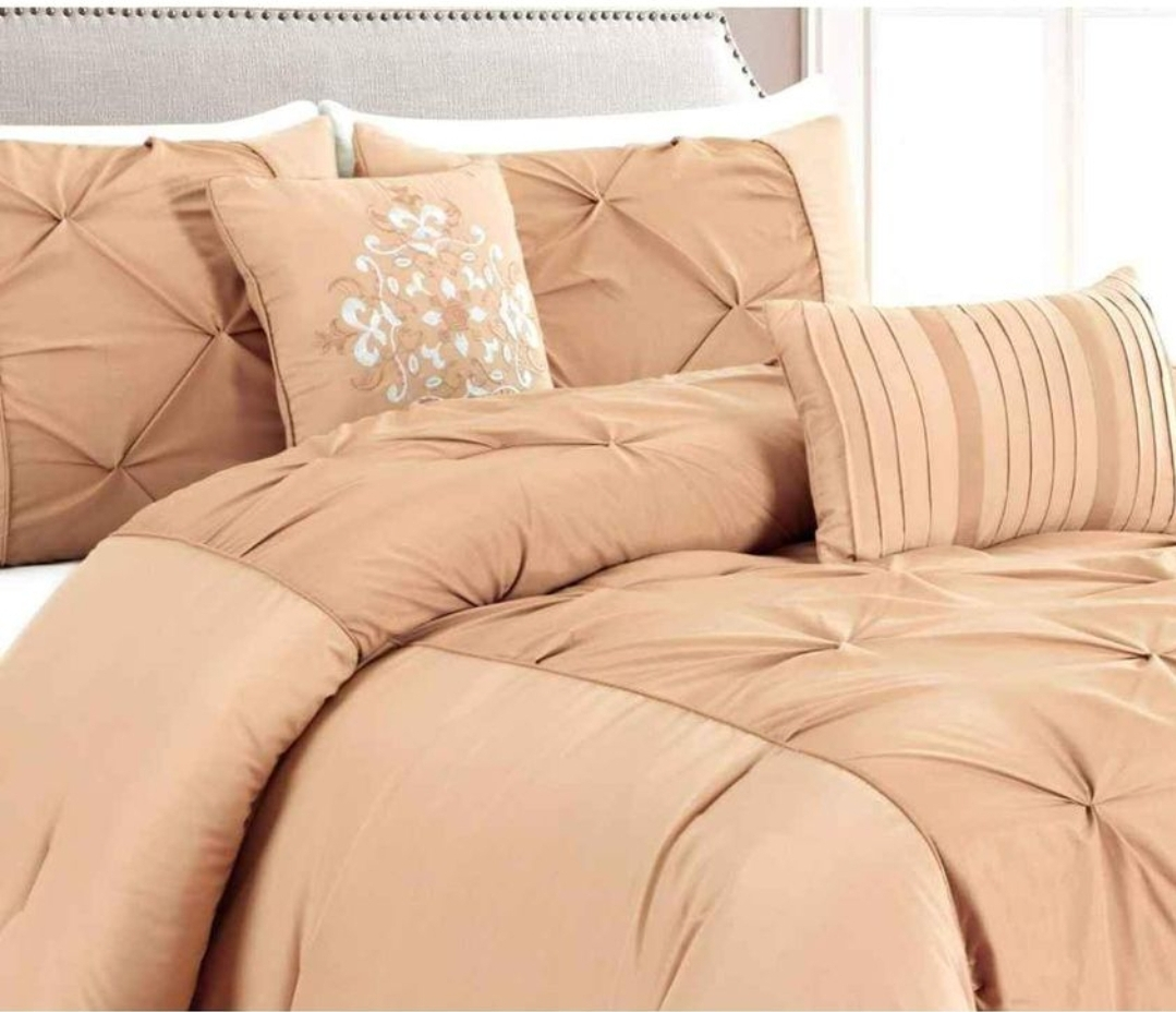 *BRAND NEW* Modern Luxurious Bedding Set- Queen Size - Beige -5 Piece Comforter Set Includes (1 Comforter, 2 Pillow Sham, 2 Decorative Pillows) Queen - Beige