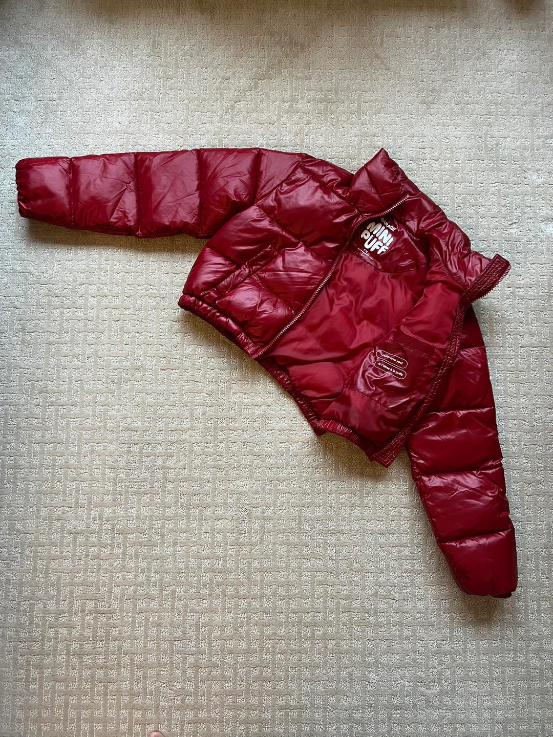 Garage brand mini puff jacket in red, size S, waterproof