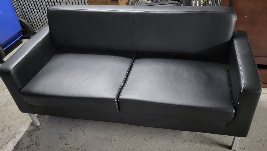 2 Seater Leather Black Sofa