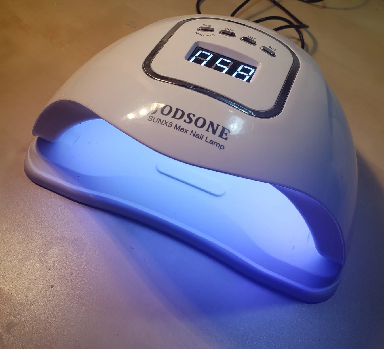 UV LED nail lamp works perfect has sensor so the light automatically turns on if you place your hand in the lamp foe hands free curing i will give it a second wipe down when you message but it is clean