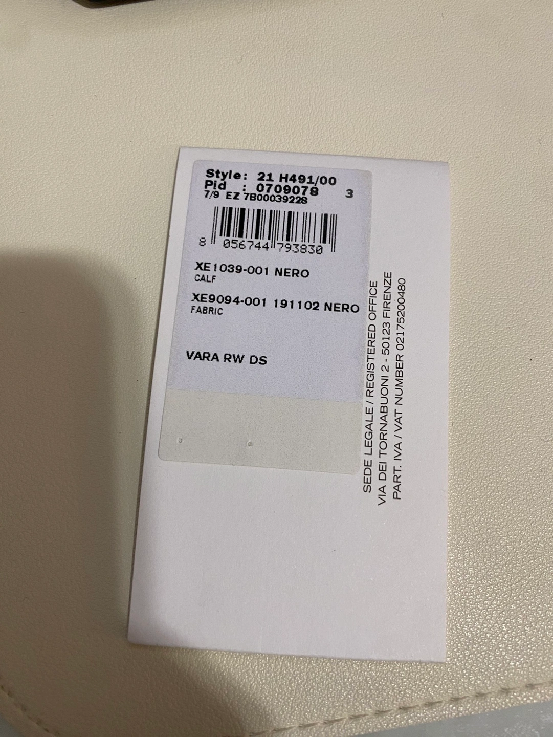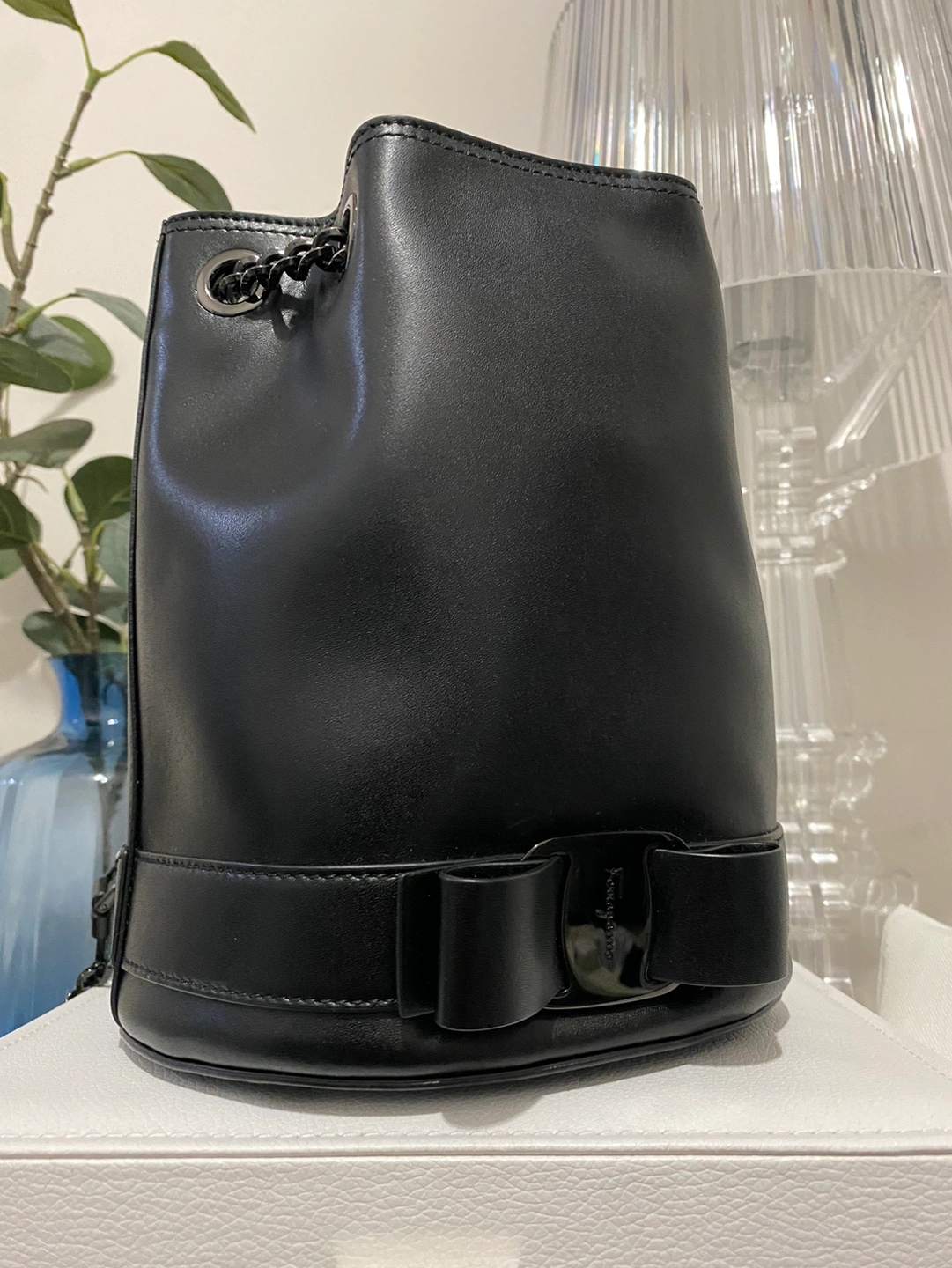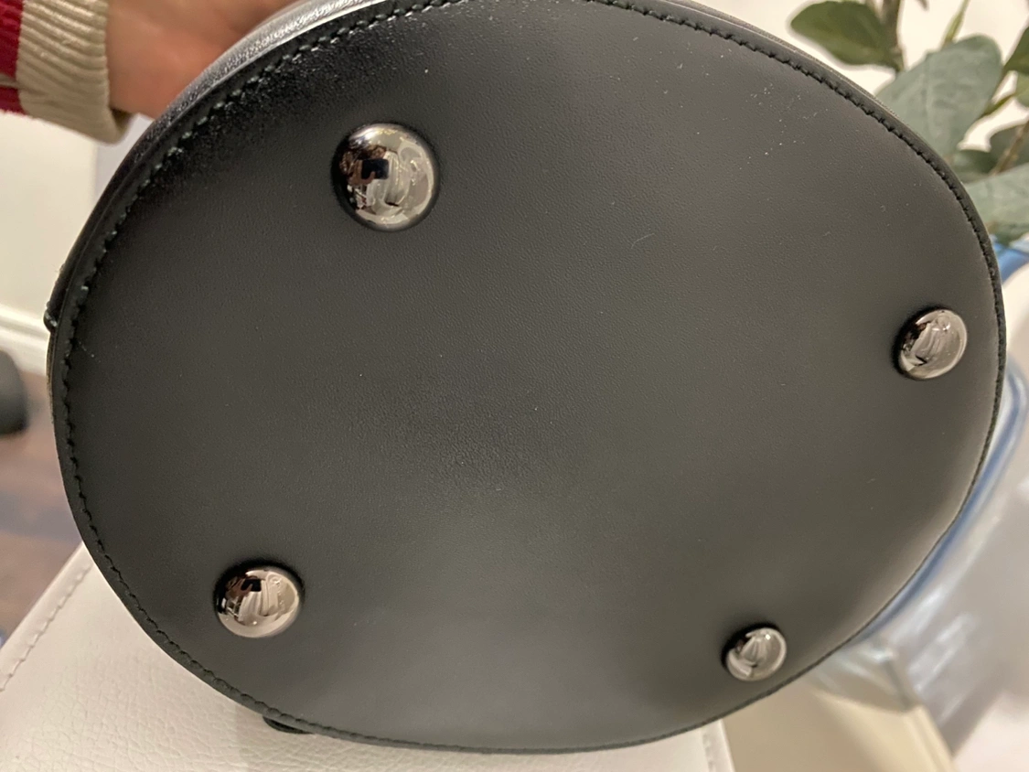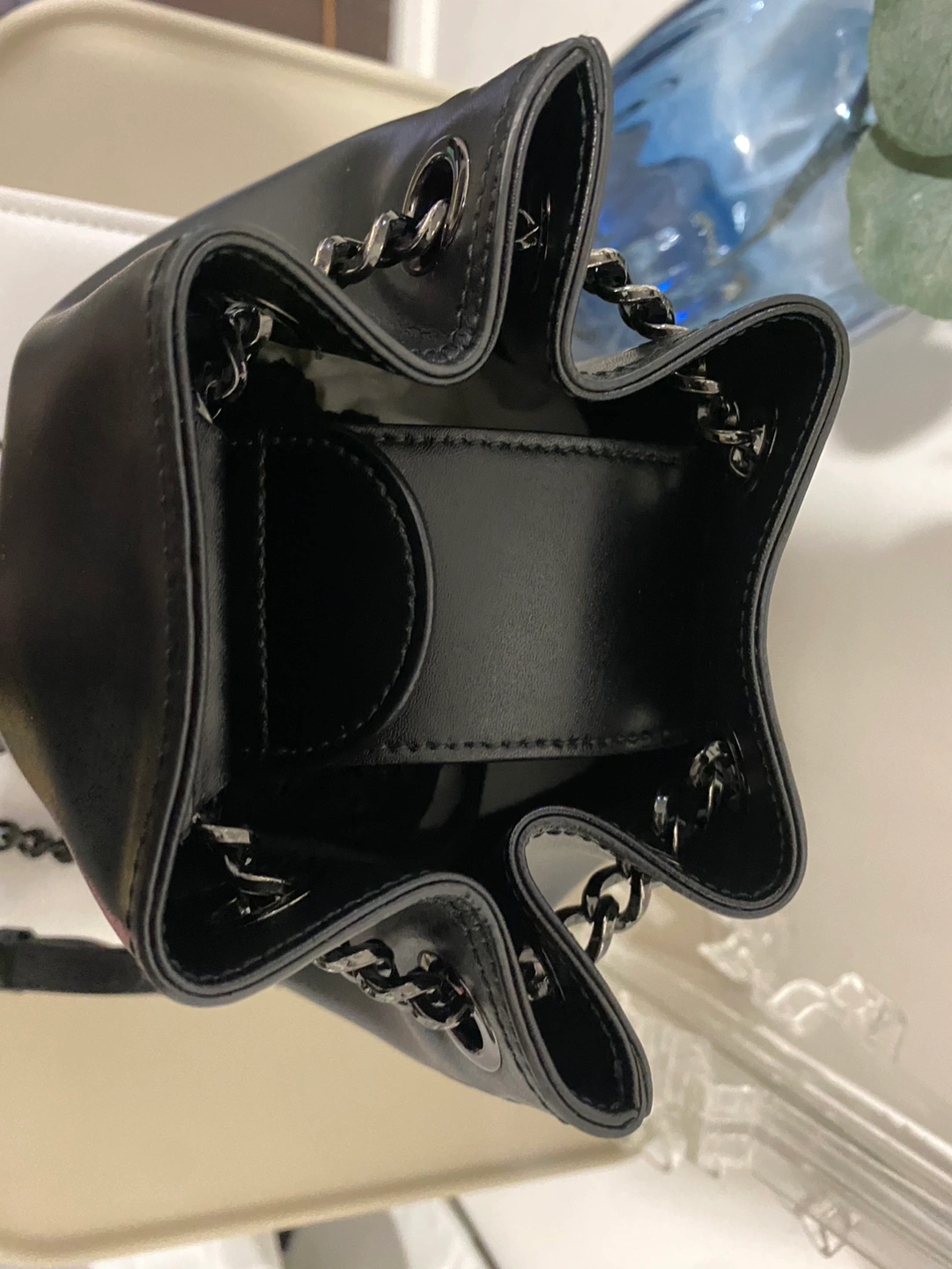 Calf skin with black chains. No scratch on leather. Hair line scratches on bottom feet. Dust bag included.