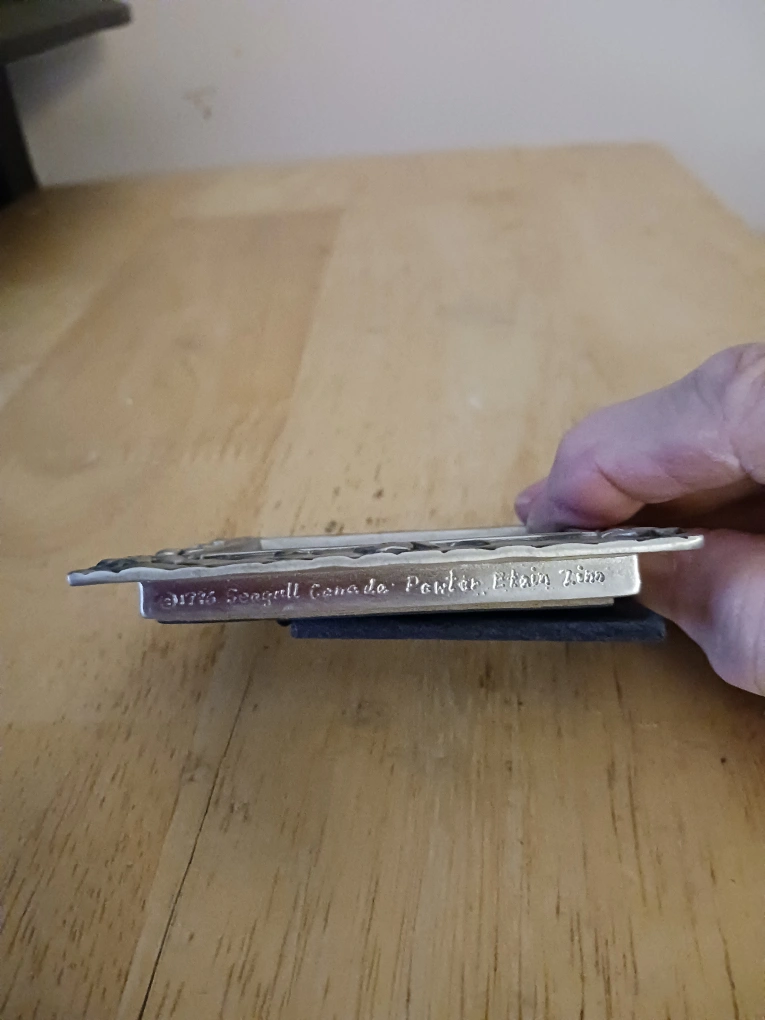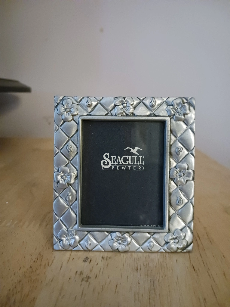 Tiny Seagull Pewter (Nova Scotia) picture frame, like wild rose on quilt design...